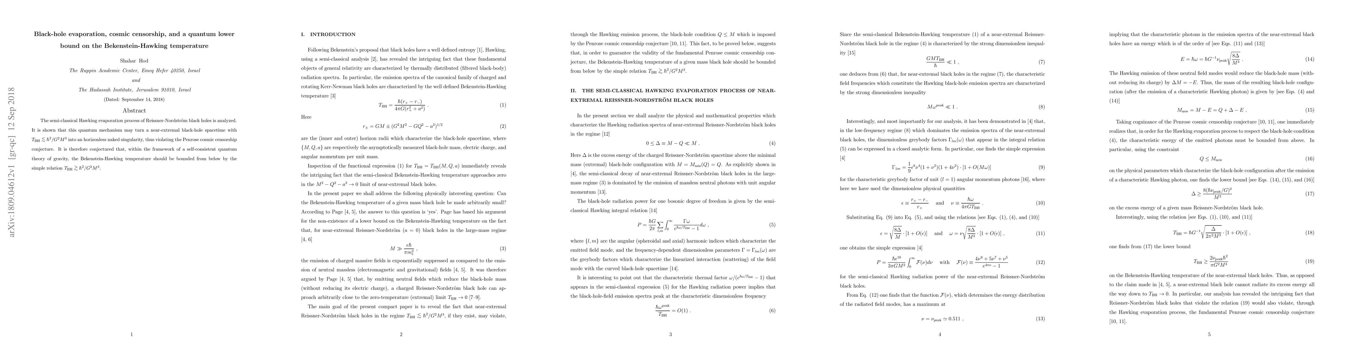 The semi-classical Hawking evaporation process of Reissner-Nordstr\"om black holes is analyzed. It is shown that this quantum mechanism may turn a near-extremal black-hole spacetime with $T_{\text{BH}}\lesssim \hbar^2/G^2M^3$ into an horizonless naked singularity, thus violating the Penrose cosmic censorship conjecture. It is therefore conjectured that, within the framework of a self-consistent quantum theory of gravity, the Bekenstein-Hawking temperature should be bounded from below by the simple relation $T_{\text{BH}}\gtrsim \hbar^2/G^2M^3$.