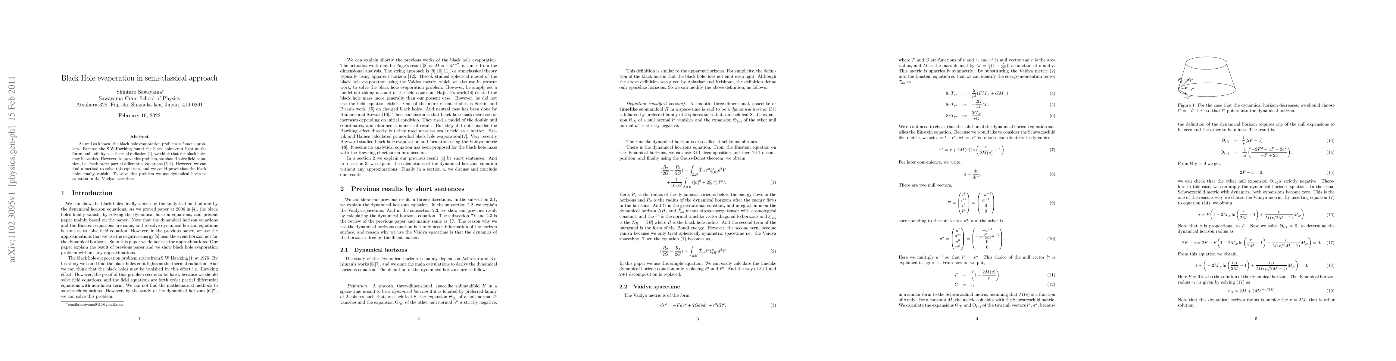 As well as known, the black hole evaporation problem is famous problem. Because the S.W.Hawking found the black holes emit light at the future null infinity as a thermal radiation \cite{H}, we think that the black holes may be vanish. However, to prove this problem, we should solve field equation, i.e. forth order partial differential equations \cite{Ford}\cite{BD}. However, we can find a method to solve this equation, and we could prove that the black holes finally vanish. To solve this problem we use dynamical horizons equation in the Vaidya spacetime.