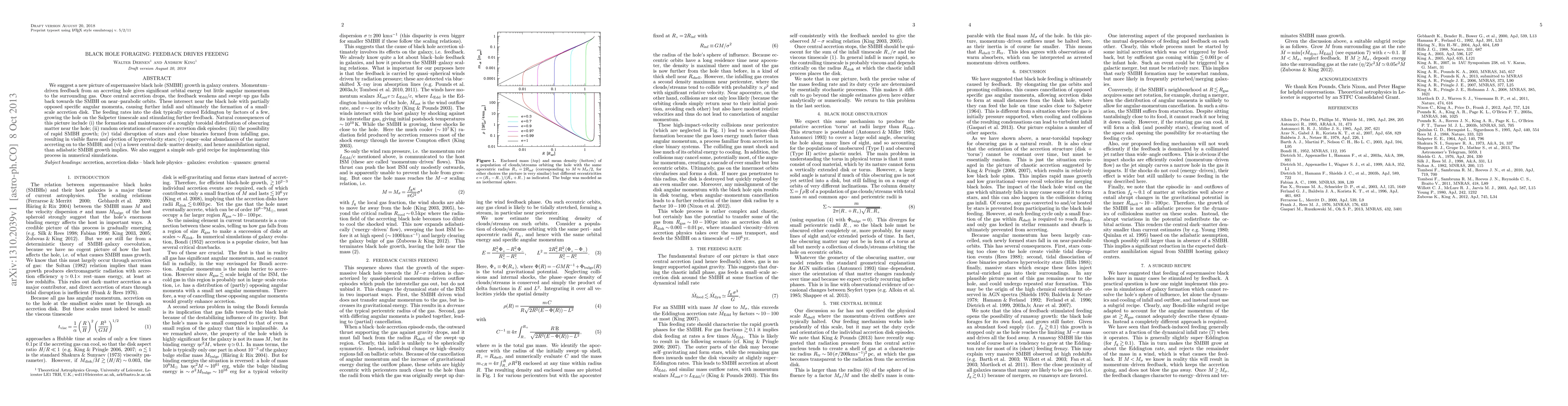 We suggest a new picture of supermassive black hole (SMBH) growth in galaxy centers. Momentum-driven feedback from an accreting hole gives significant orbital energy but little angular momentum to the surrounding gas. Once central accretion drops, the feedback weakens and swept-up gas falls back towards the SMBH on near-parabolic orbits. These intersect near the black hole with partially opposed specific angular momenta, causing further infall and ultimately the formation of a small-scale accretion disk. The feeding rates into the disk typically exceed Eddington by factors of a few, growing the hole on the Salpeter timescale and stimulating further feedback. Natural consequences of this picture include (i) the formation and maintenance of a roughly toroidal distribution of obscuring matter near the hole; (ii) random orientations of successive accretion disk episodes; (iii) the possibility of rapid SMBH growth; (iv) tidal disruption of stars and close binaries formed from infalling gas, resulting in visible flares and ejection of hypervelocity stars; (v) super-solar abundances of the matter accreting on to the SMBH; and (vi) a lower central dark-matter density, and hence annihilation signal, than adiabatic SMBH growth implies. We also suggest a simple sub-grid recipe for implementing this process in numerical simulations.