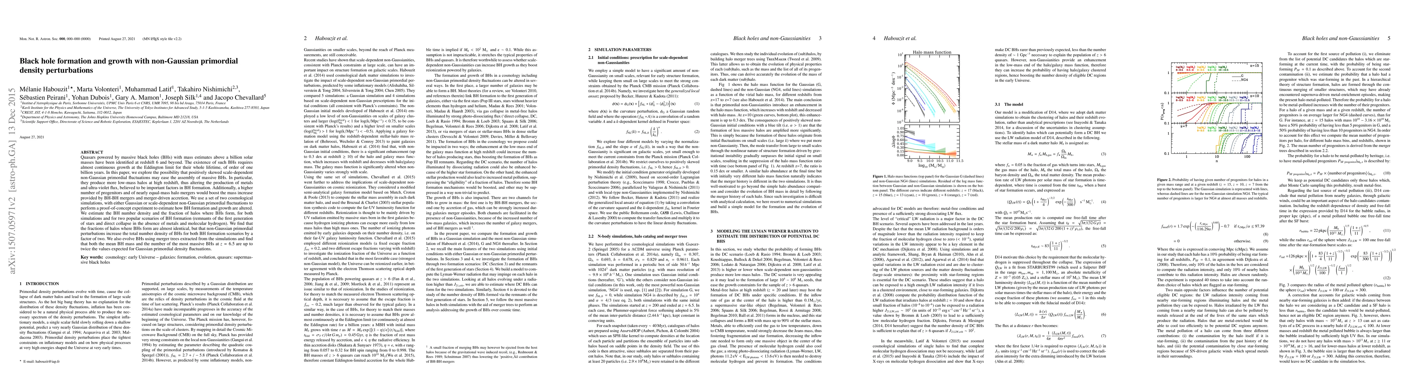 This paper investigates how scale-dependent non-Gaussian primordial density perturbations may facilitate the formation and growth of massive black holes, finding that such perturbations increase the total number density and mass of black holes compared to Gaussian fluctuations. The study uses cosmological simulations to compare black hole formation under different primordial fluctuation scenarios.