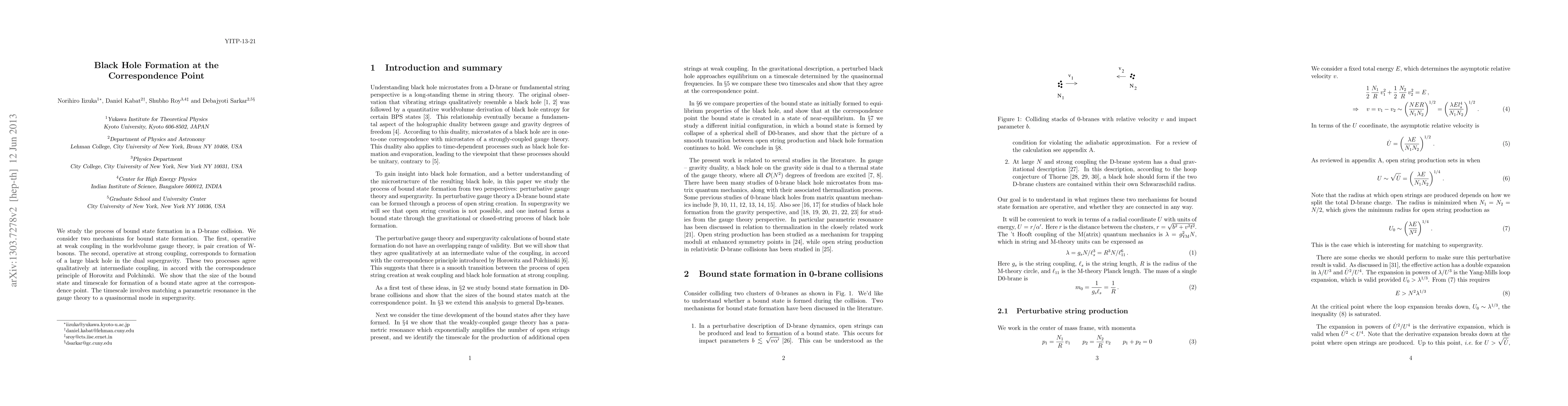 We study the process of bound state formation in a D-brane collision. We consider two mechanisms for bound state formation. The first, operative at weak coupling in the worldvolume gauge theory, is pair creation of W-bosons. The second, operative at strong coupling, corresponds to formation of a large black hole in the dual supergravity. These two processes agree qualitatively at intermediate coupling, in accord with the correspondence principle of Horowitz and Polchinski. We show that the size of the bound state and timescale for formation of a bound state agree at the correspondence point. The timescale involves matching a parametric resonance in the gauge theory to a quasinormal mode in supergravity.