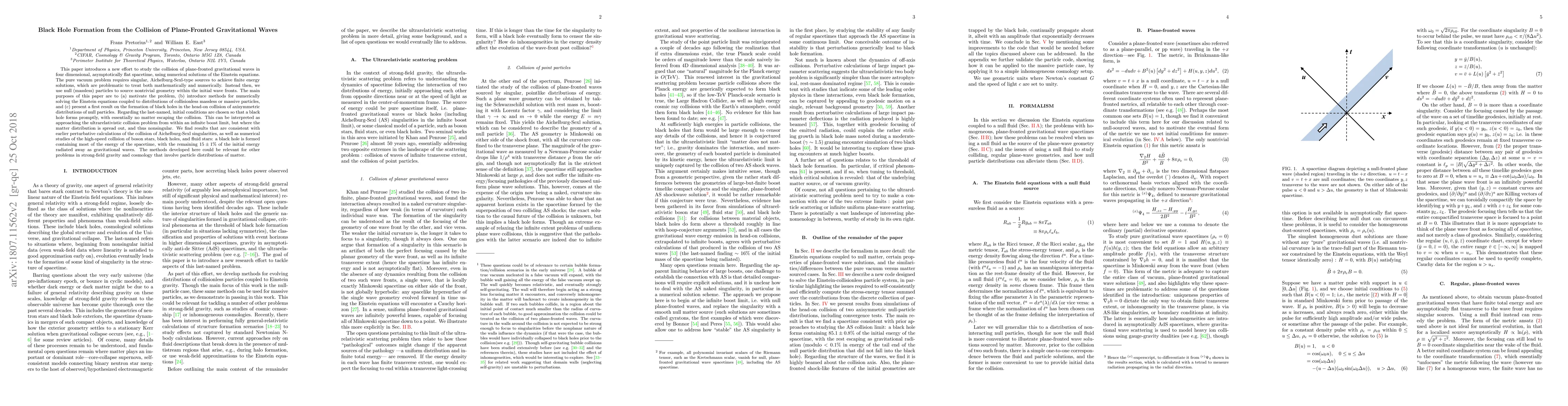 This paper introduces a new effort to study the collision of plane-fronted gravitational waves in four dimensional, asymptotically flat spacetime, using numerical solutions of the Einstein equations. The pure vacuum problem requires singular, Aichelburg-Sexl type sources to achieve finite energy solutions, which are problematic to treat both mathematically and numerically. Instead then, we use null (massless) particles to source non-trivial geometry within the initial wave fronts. The main purposes of this paper are to (a) motivate the problem, (b) introduce methods for numerically solving the Einstein equations coupled to distributions of collisionless massless or massive particles, and (c) present a first result on the formation of black holes in the head-on collision of axisymmetric distributions of null particles. Regarding the last-named, initial conditions are chosen so that a black hole forms promptly, with essentially no matter escaping the collision. This can be interpreted as approaching the ultra-relativistic collision problem from within an infinite boost limit, but where the matter distribution is spread out, and thus non-singular. We find results that are consistent with earlier perturbative calculations of the collision of Aichelburg-Sexl singularities, as well as numerical studies of the high-speed collision of boson stars, black holes, and fluid stars: a black hole is formed containing most of the energy of the spacetime, with the remaining $15\pm1\%$ of the initial energy radiated away as gravitational waves. The methods developed here could be relevant for other problems in strong field gravity and cosmology that involve particle distributions of matter.