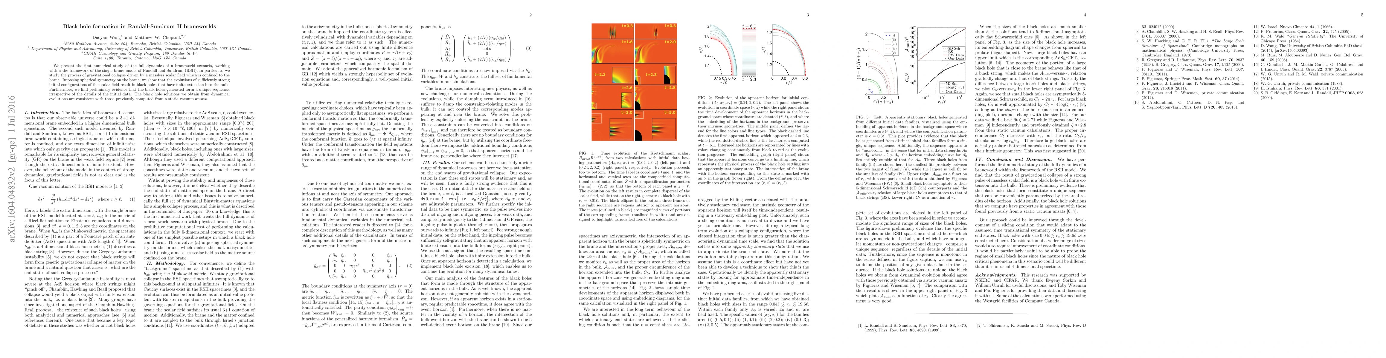 The paper introduces a novel numerical method for studying gravitational collapse in RSII braneworlds, utilizing spherical symmetry, a massless scalar field, and a generalized harmonic formalism to derive well-posed initial value problems.