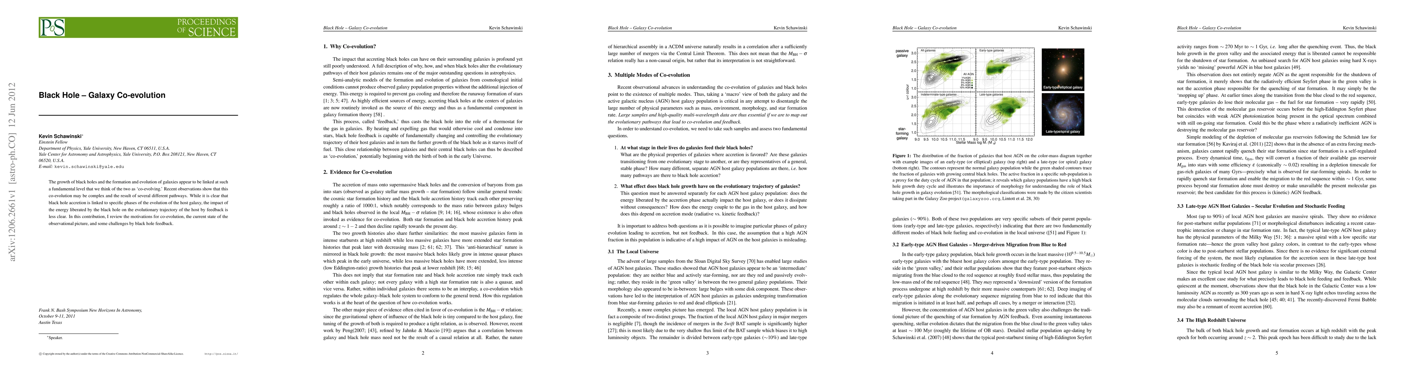 The growth of black holes and the formation and evolution of galaxies appear to be linked at such a fundamental level that we think of the two as `co-evolving.' Recent observations show that this co-evolution may be complex and the result of several different pathways. While it is clear that black hole accretion is linked to specific phases of the evolution of the host galaxy, the impact of the energy liberated by the black hole on the evolutionary trajectory of the host by feedback is less clear. In this contribution, I review the motivations for co-evolution, the current state of the observational picture, and some challenges by black hole feedback.