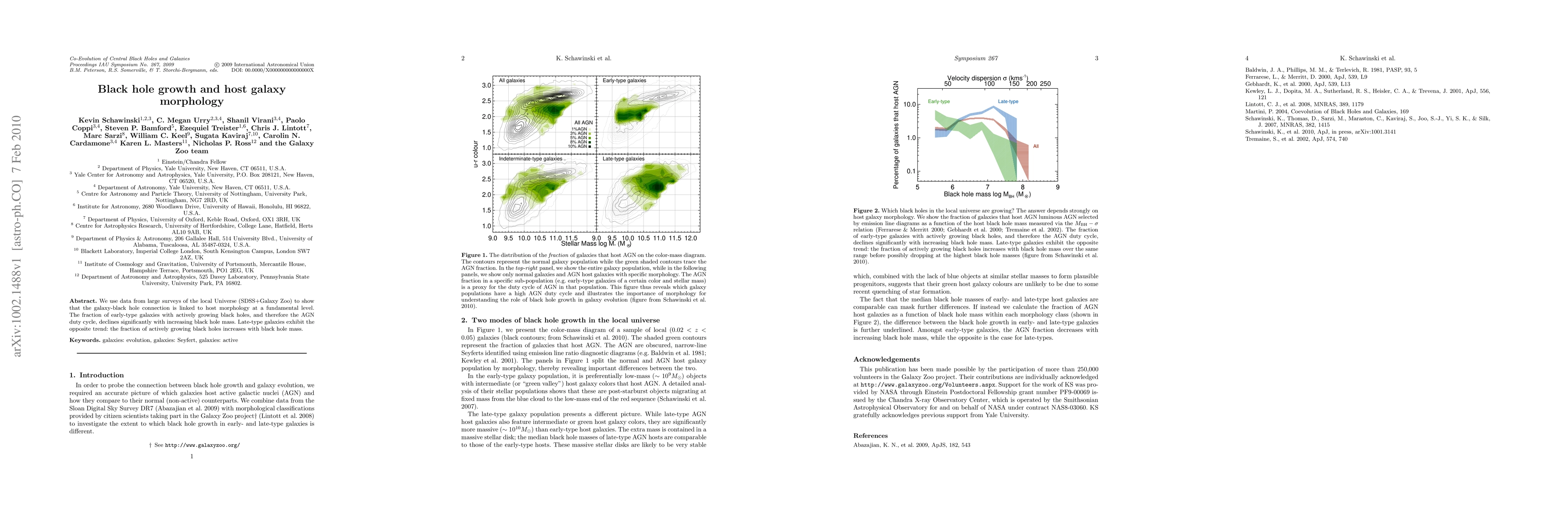 Summary: Research utilizing SDSS+Galaxy Zoo data reveals a fundamental link between black hole growth and host galaxy morphology, showing that early-type galaxies with larger black holes have a lower fraction of active growth, while late-type galaxies display an increasing fraction of active black holes with greater mass.