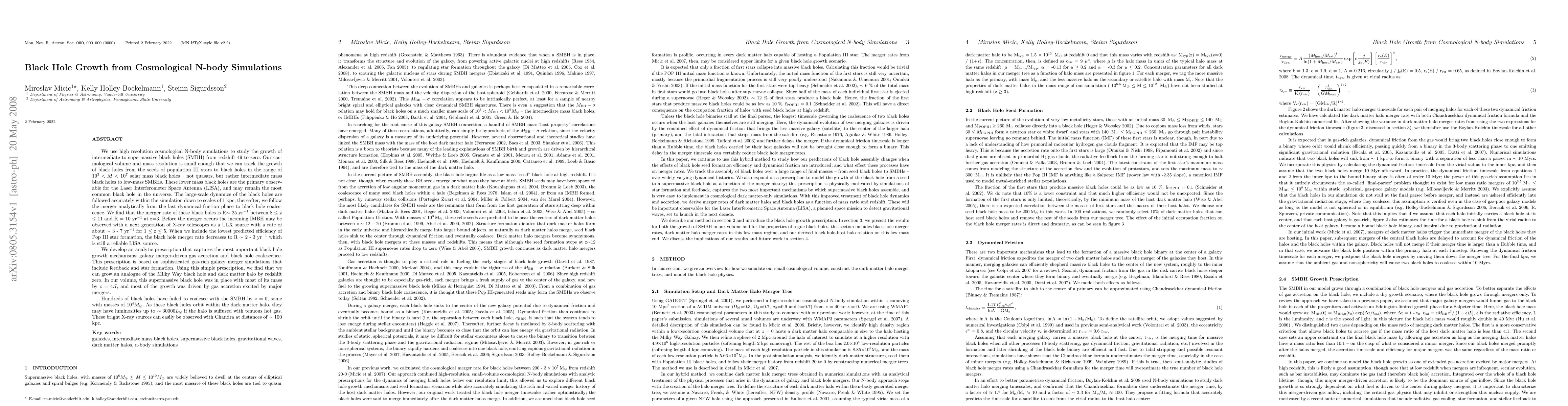 This paper uses high-resolution N-body simulations to study the growth of intermediate to supermassive black holes from redshift 49 to 0, finding that most growth occurs via gas accretion driven by galaxy mergers. The study predicts observable rates for these black holes and their potential detection by LISA and next-generation X-ray telescopes.