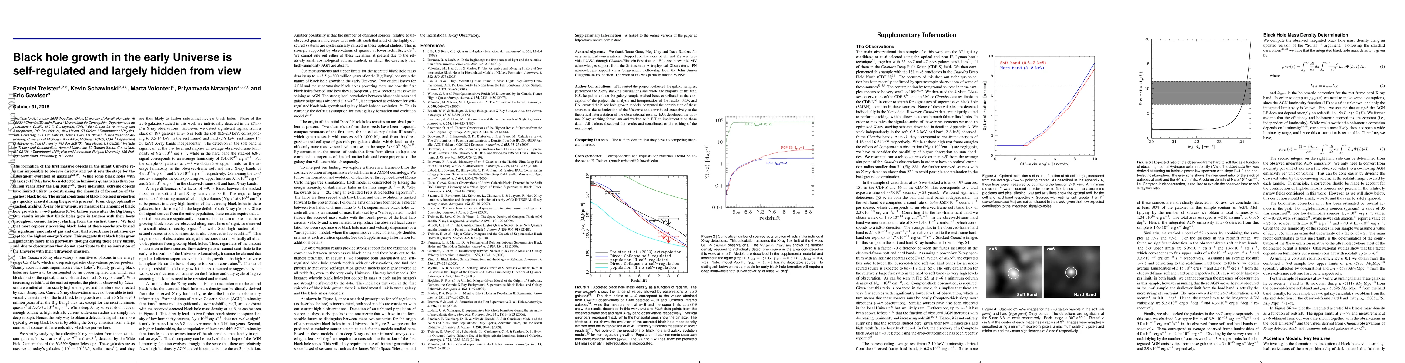 This paper finds that black hole growth in the early Universe is self-regulated and largely obscured, suggesting that most accreting black holes in the first billion years after the Big Bang are hidden in gas and dust, absorbing most radiation except for high-energy X-rays. This growth is closely tied to the evolution of their host galaxies.