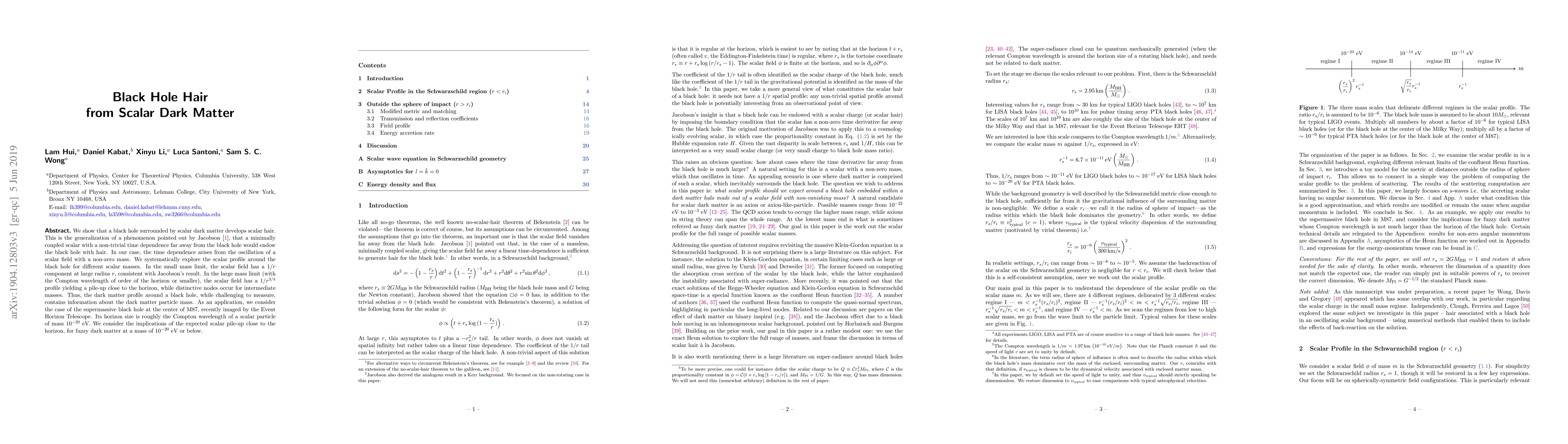 This paper demonstrates that black holes can develop "hair" from scalar dark matter due to the oscillation of a scalar field, generalizing Jacobson's findings. The study explores scalar profiles around black holes for various scalar masses, revealing distinct behaviors and implications for dark matter mass, with specific focus on supermassive black holes like the one in M87.