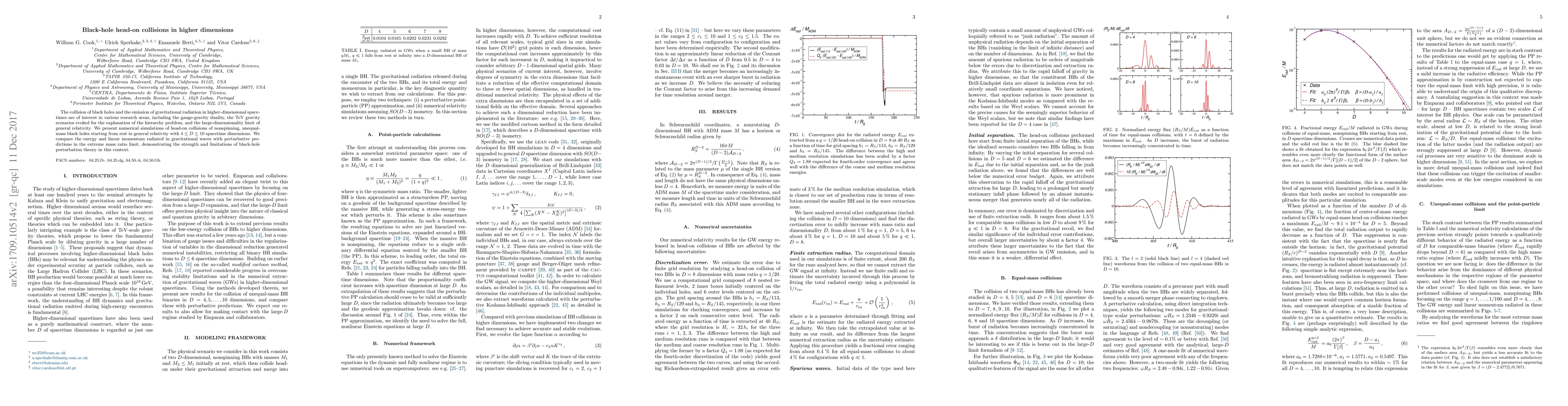 This paper presents numerical simulations of head-on collisions between unequal-mass black holes in higher-dimensional spacetimes ($4 \leq D \leq 10$), comparing the emitted gravitational radiation with perturbative predictions to assess the validity of black-hole perturbation theory in these scenarios.