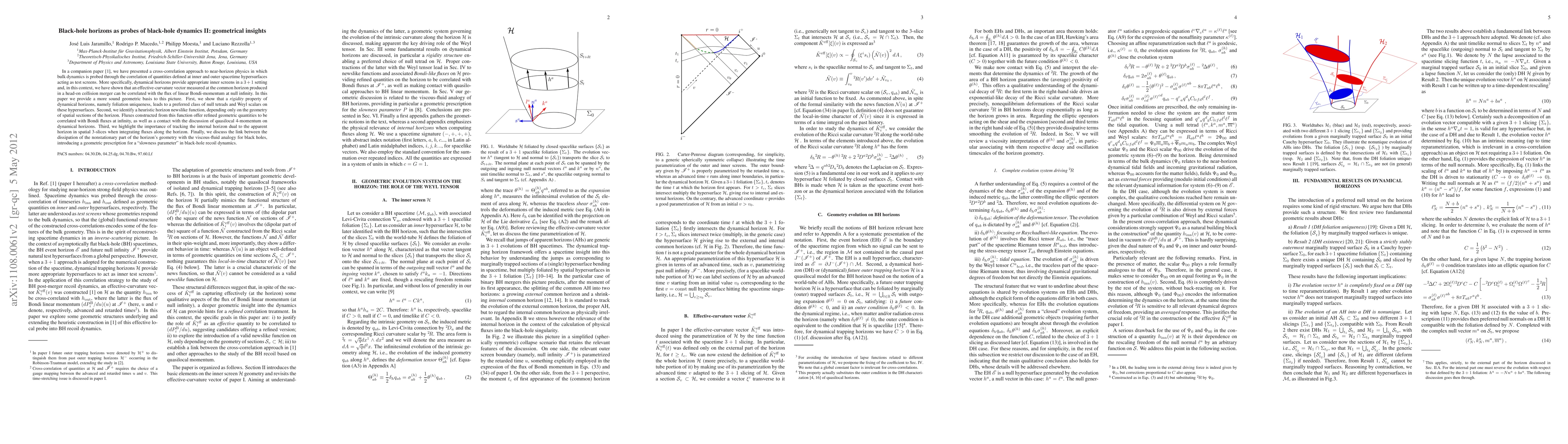 In a companion paper [1], we have presented a cross-correlation approach to near-horizon physics in which bulk dynamics is probed through the correlation of quantities defined at inner and outer spacetime hypersurfaces acting as test screens. More specifically, dynamical horizons provide appropriate inner screens in a 3+1 setting and, in this context, we have shown that an effective-curvature vector measured at the common horizon produced in a head-on collision merger can be correlated with the flux of linear Bondi-momentum at null infinity. In this paper we provide a more sound geometric basis to this picture. First, we show that a rigidity property of dynamical horizons, namely foliation uniqueness, leads to a preferred class of null tetrads and Weyl scalars on these hypersurfaces. Second, we identify a heuristic horizon news-like function, depending only on the geometry of spatial sections of the horizon. Fluxes constructed from this function offer refined geometric quantities to be correlated with Bondi fluxes at infinity, as well as a contact with the discussion of quasi-local 4-momentum on dynamical horizons. Third, we highlight the importance of tracking the internal horizon dual to the apparent horizon in spatial 3-slices when integrating fluxes along the horizon. Finally, we discuss the link between the dissipation of the non-stationary part of the horizon's geometry with the viscous-fluid analogy for black holes, introducing a geometric prescription for a "slowness parameter" in black-hole recoil dynamics.