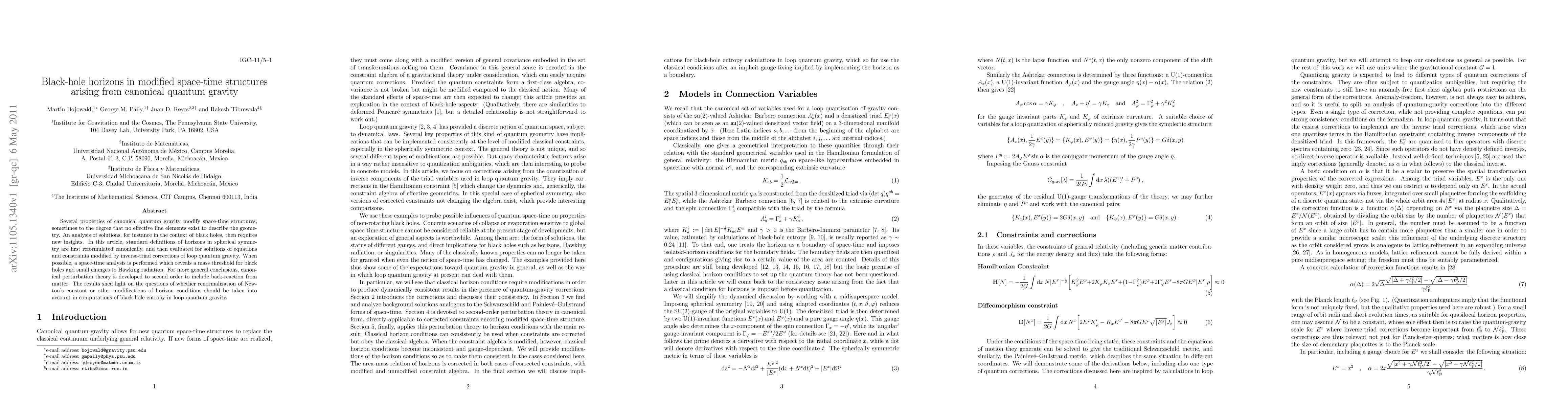 This paper reformulates black hole horizons in the context of modified space-time structures from canonical quantum gravity, particularly focusing on inverse-triad corrections from loop quantum gravity. It develops canonical perturbation theory to second order to analyze the implications for black hole mass thresholds and Hawking radiation, providing insights into the renormalization of Newton's constant in loop quantum gravity.