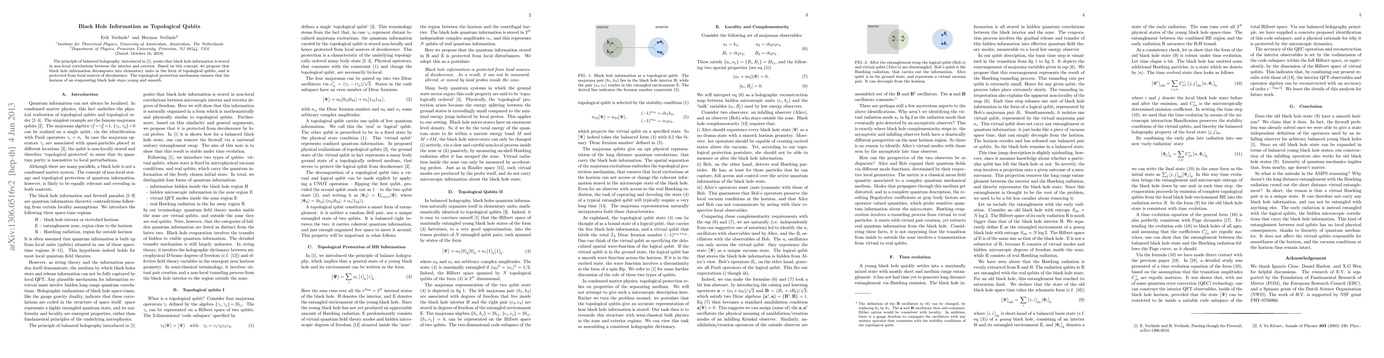 The paper introduces the concept of topological qubits as a means to protect black hole information from local decoherence, grounded in balanced holography principles.