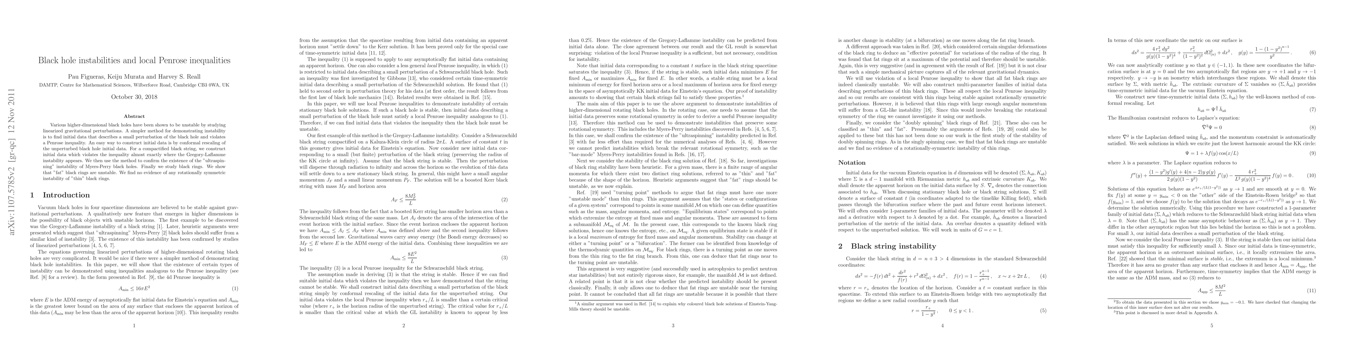 Various higher-dimensional black holes have been shown to be unstable by studying linearized gravitational perturbations. A simpler method for demonstrating instability is to find initial data that describes a small perturbation of the black hole and violates a Penrose inequality. An easy way to construct initial data is by conformal rescaling of the unperturbed black hole initial data. For a compactified black string, we construct initial data which violates the inequality almost exactly where the Gregory-Laflamme instability appears. We then use the method to confirm the existence of the "ultraspinning" instability of Myers-Perry black holes. Finally we study black rings. We show that "fat" black rings are unstable. We find no evidence of any rotationally symmetric instability of "thin" black rings.