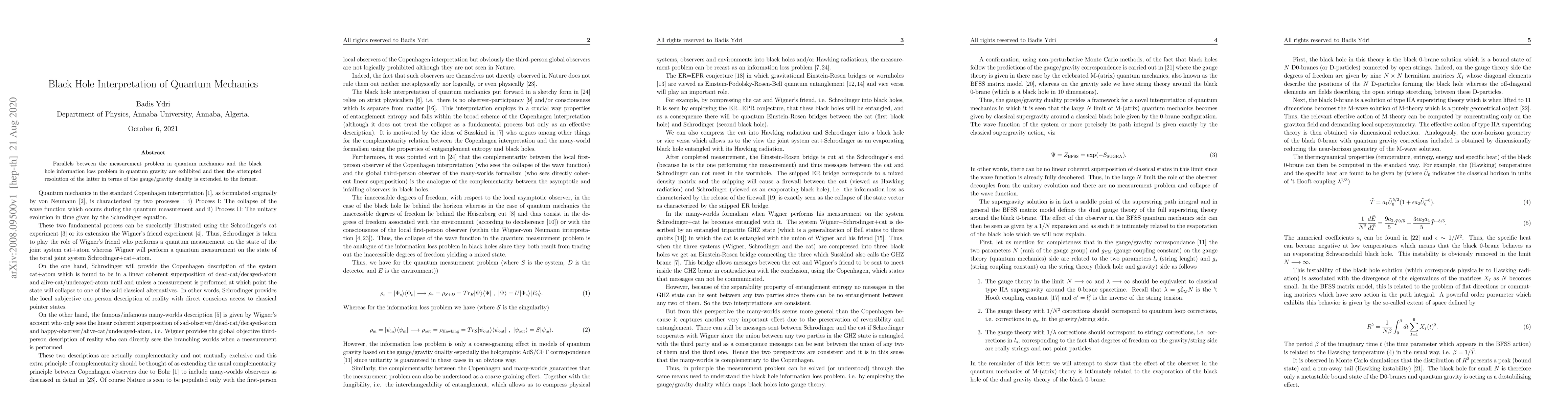 Summary: This paper explores the analogy between quantum mechanics' measurement problem and the black hole information loss paradox, applying the gauge/gravity duality to potentially resolve the former.