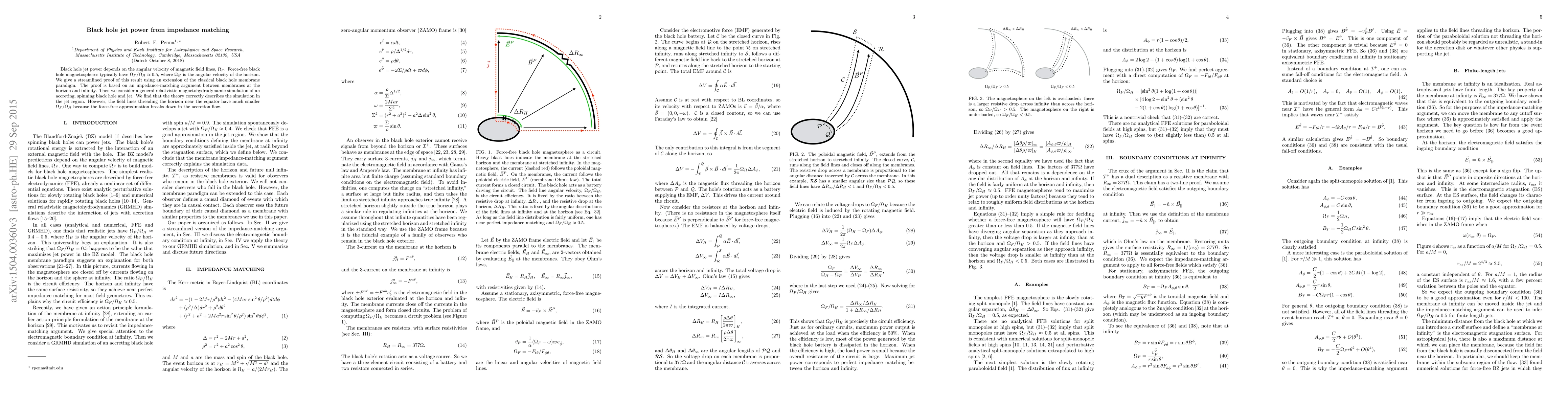 This paper demonstrates that black hole jet power is determined by impedance matching between black hole horizon and infinity, showing that $\Omega_F/\Omega_H \approx 0.5$ in force-free magnetospheres. The theory aligns with relativistic MHD simulations, though it breaks down near the equator where field lines have much smaller $\Omega_F/\Omega_H$.