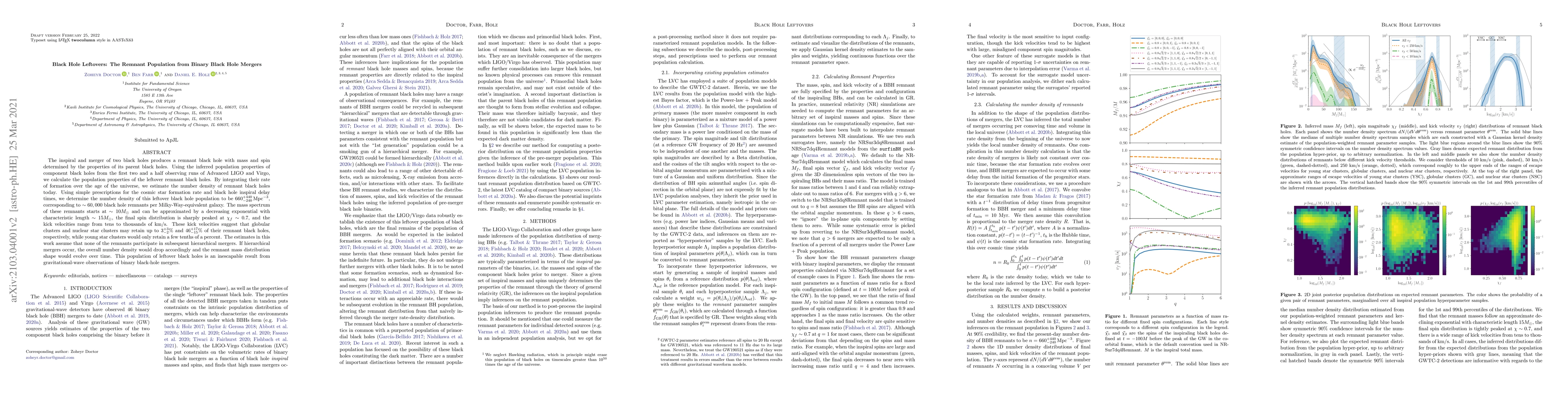 The inspiral and merger of two black holes produces a remnant black hole with mass and spin determined by the properties of its parent black holes. Using the inferred population properties of component black holes from the first two and a half observing runs of Advanced LIGO and Virgo, we calculate the population properties of the leftover remnant black holes. By integrating their rate of formation over the age of the universe, we estimate the number density of remnant black holes today. Using simple prescriptions for the cosmic star formation rate and black hole inspiral delay times, we determine the number density of this leftover black hole population to be $660_{-240}^{+440} \mathrm{Mpc}^{-3}$, corresponding to $\sim 60,000$ black hole remnants per Milky-Way-equivalent galaxy. The mass spectrum of these remnants starts at $\sim 10 M_\odot$ and can be approximated by a decreasing exponential with characteristic length $\sim 15 M_\odot$, the final spin distribution is sharply peaked at $\chi_f\sim0.7$, and the kick velocities range from tens to thousands of km/s. These kick velocities suggest that globular clusters and nuclear star clusters may retain up to $3_{-2}^{+3}\%$ and $46_{-15}^{+17}\%$ of their remnant black holes, respectively, while young star clusters would only retain a few tenths of a percent. The estimates in this work assume that none of the remnants participate in subsequent hierarchical mergers. If hierarchical mergers occur, the overall number density would drop accordingly and the remnant mass distribution shape would evolve over time. This population of leftover black holes is an inescapable result from gravitational-wave observations of binary black-hole mergers.