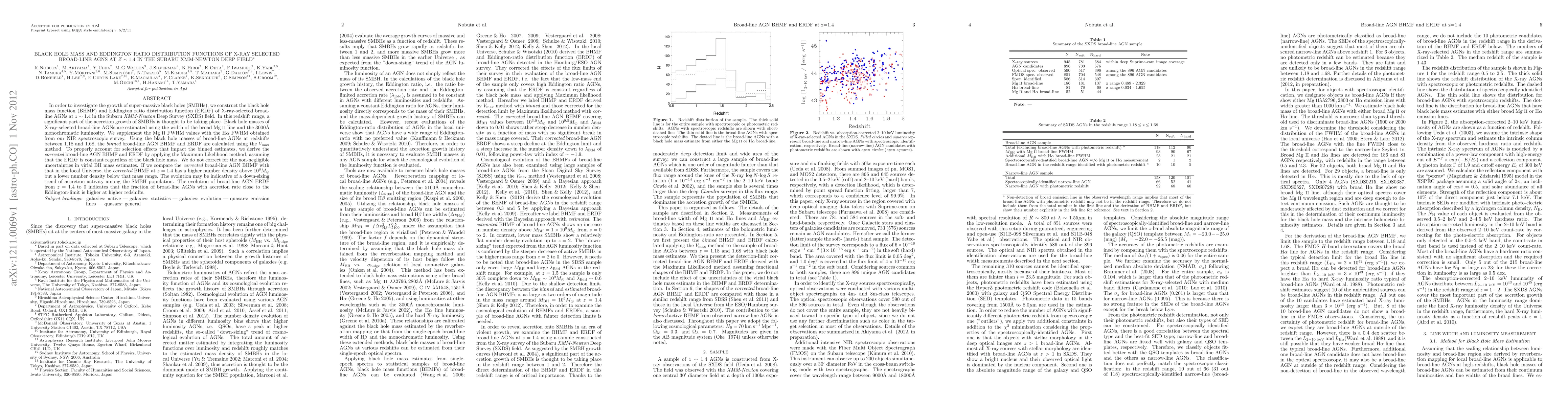 In order to investigate the growth of super-massive black holes (SMBHs), we construct the black hole mass function (BHMF) and Eddington ratio distribution function (ERDF) of X-ray-selected broad-line AGNs at z~1.4 in the Subaru XMM-Newton Deep Survey field. In this redshift range, a significant part of the accretion growth of SMBHs is thought to be taking place. Black hole masses of X-ray-selected broad-line AGNs are estimated using the width of the broad MgII line and the 3000A monochromatic luminosity. We supplement the MgII FWHM values with the Ha FWHM obtained from our NIR spectroscopic survey. Using the black hole masses of broad-line AGNs at redshifts between 1.18 and 1.68, the binned broad-line AGN BHMF and ERDF are calculated using the Vmax method. To properly account for selection effects that impact the binned estimates, we derive the corrected broad-line AGN BHMF and ERDF by applying the Maximum Likelihood method, assuming that the ERDF is constant regardless of the black hole mass. We do not correct for the non-negligible uncertainties in virial BH mass estimates. If we compare the corrected broad-line AGN BHMF with that in the local Universe, the corrected BHMF at z~1.4 has a higher number density above 10^8 Msolar but a lower number density below that mass range. The evolution may be indicative of a down-sizing trend of accretion activity among the SMBH population. The evolution of broad-line AGN ERDF from z=1.4 to 0 indicates that the fraction of broad-line AGNs with accretion rate close to the Eddington-limit is higher at higher redshifts.