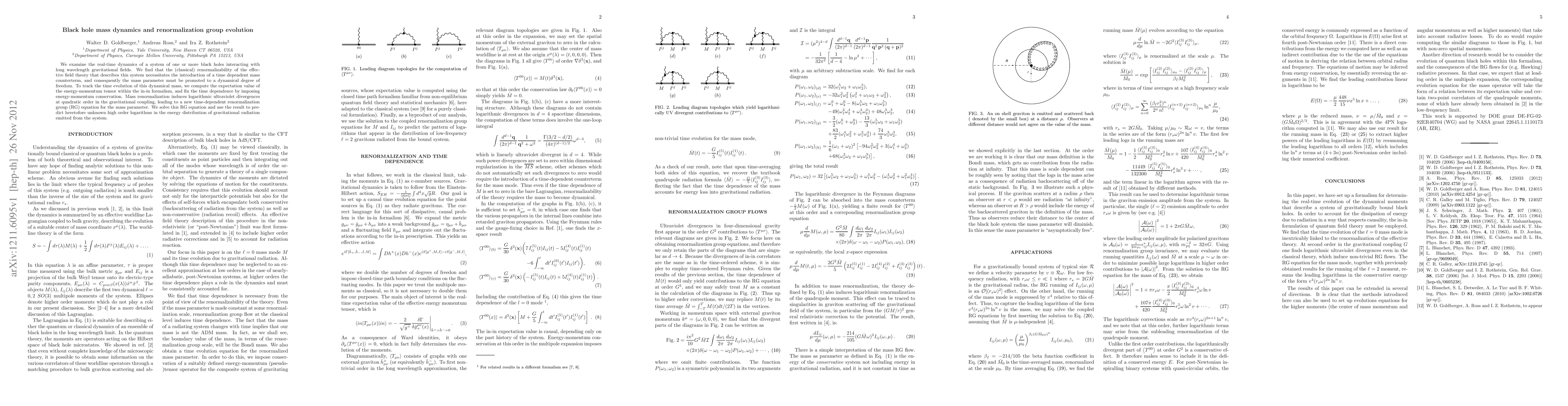 We examine the real-time dynamics of a system of one or more black holes interacting with long wavelength gravitational fields. We find that the (classical) renormalizability of the effective field theory that describes this system necessitates the introduction of a time dependent mass counterterm, and consequently the mass parameter must be promoted to a dynamical degree of freedom. To track the time evolution of this dynamical mass, we compute the expectation value of the energy-momentum tensor within the in-in formalism, and fix the time dependence by imposing energy-momentum conservation. Mass renormalization induces logarithmic ultraviolet divergences at quadratic order in the gravitational coupling, leading to a new time-dependent renormalization group (RG) equation for the mass parameter. We solve this RG equation and use the result to predict heretofore unknown high order logarithms in the energy distribution of gravitational radiation emitted from the system.