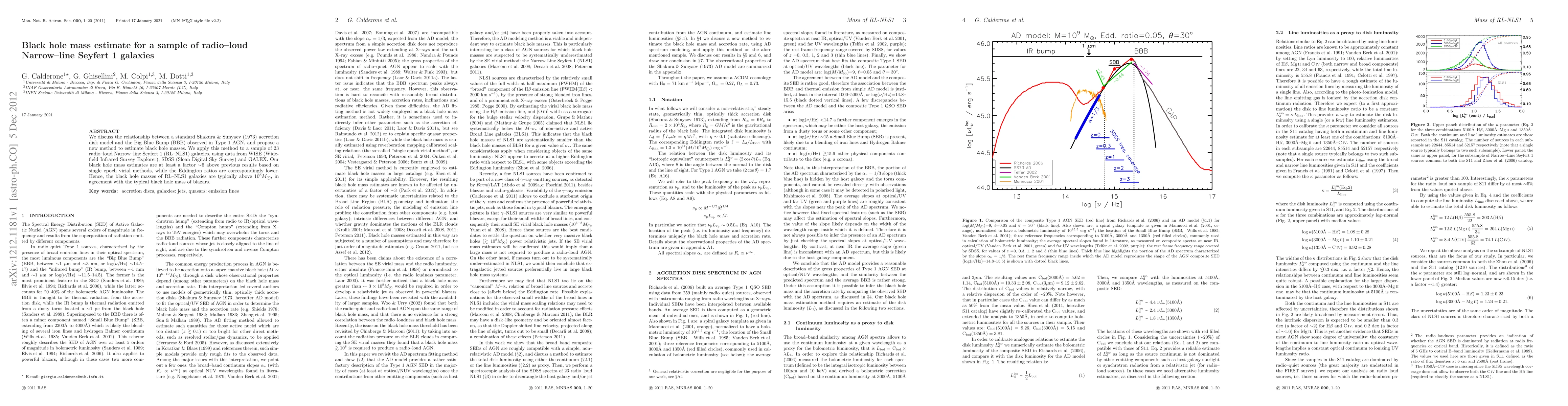 We discuss the relationship between a standard Shakura & Sunyaev (1973) accretion disk model and the Big Blue Bump (BBB) observed in Type 1 AGN, and propose a new method to estimate black hole masses. We apply this method to a sample of 23 radio-loud narrow-line Seyfert 1 (RL-NLS1) galaxies, using data from WISE (Wide-field Infrared Survey Explorer), SDSS (Sloan Digital Sky Survey) and GALEX. Our black hole mass estimates are at least a factor $\sim$6 above previous results based on single epoch virial methods, while the Eddington ratios are correspondingly lower. Hence, the black hole masses of RL-NLS1 galaxies are typically above $10^8 M_{\sun}$, in agreement with the typical black hole mass of blazars.