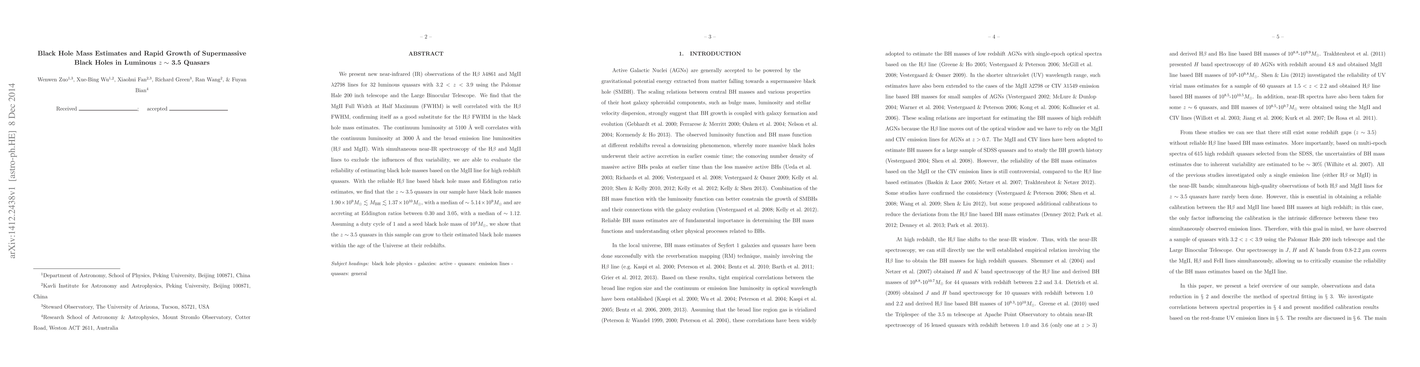 This paper uses near-infrared observations to estimate black hole masses in luminous quasars at $z\sim3.5$, finding that the MgII line correlates well with the H$\beta$ line for mass estimates. The quasars exhibit rapid growth, with black hole masses ranging from $1.90\times10^{9} M_{\odot}$ to $1.37\times10^{10} M_{\odot}$, suggesting they can reach these masses within the age of the Universe at their redshift.