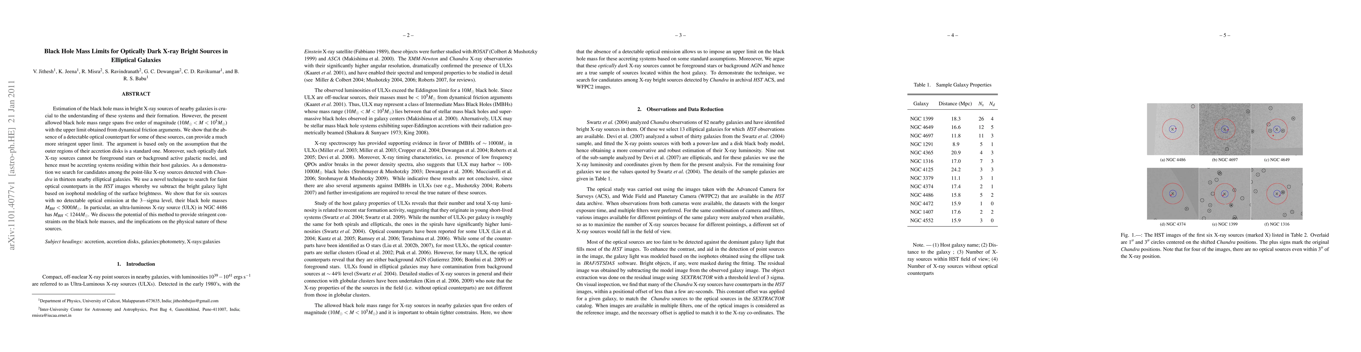 Estimation of the black hole mass in bright X-ray sources of nearby galaxies is crucial to the understanding of these systems and their formation. However, the present allowed black hole mass range spans five order of magnitude (10Msun < M < 10^5 Msun) with the upper limit obtained from dynamical friction arguments. We show that the absence of a detectable optical counterpart for some of these sources, can provide a much more stringent upper limit. The argument is based only on the assumption that the outer regions of their accretion disks is a standard one. Moreover, such optically dark X-ray sources cannot be foreground stars or background active galactic nuclei, and hence must be accreting systems residing within their host galaxies. As a demonstration we search for candidates among the point-like X-ray sources detected with Chandra in thirteen nearby elliptical galaxies. We use a novel technique to search for faint optical counterparts in the HST images whereby we subtract the bright galaxy light based on isophotal modeling of the surface brightness. We show that for six sources with no detectable optical emission at the 3$-$sigma level, their black hole masses M_{BH} < 5000Msun. In particular, an ultra-luminous X-ray source (ULX) in NGC 4486 has M_{BH} < 1244 Msun. We discuss the potential of this method to provide stringent constraints on the black hole masses, and the implications on the physical nature of these sources.