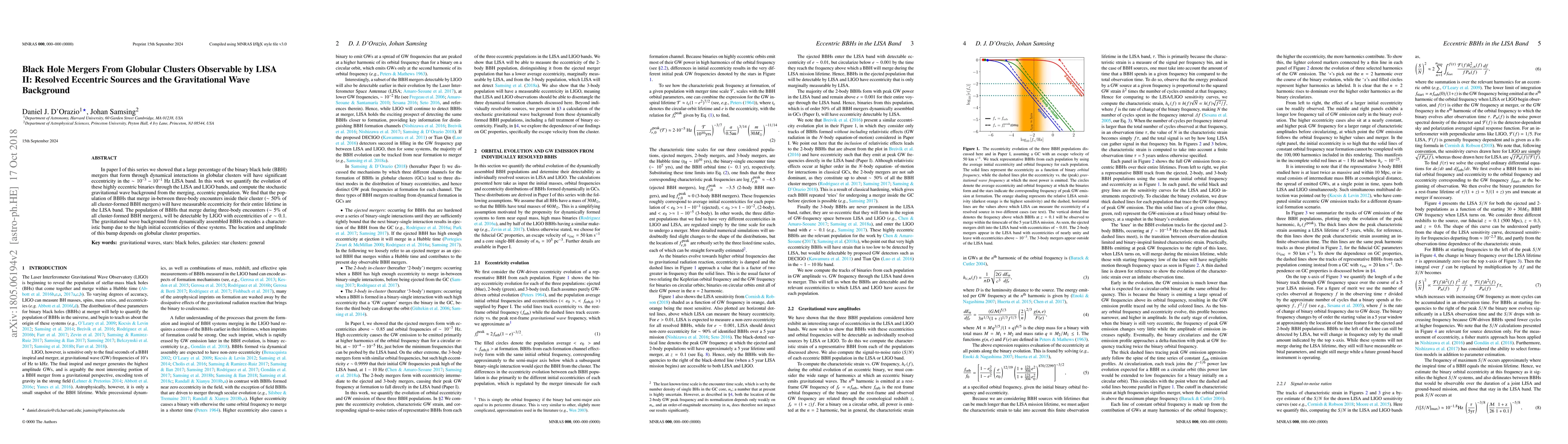 This paper quantifies the evolution of highly eccentric binary black hole mergers from globular clusters, showing that ~50% of these mergers maintain significant eccentricity detectable by LISA. It also predicts that ~5% of these mergers will be detectable by LIGO, contributing to a characteristic bump in the gravitational wave background due to their initial eccentricities.