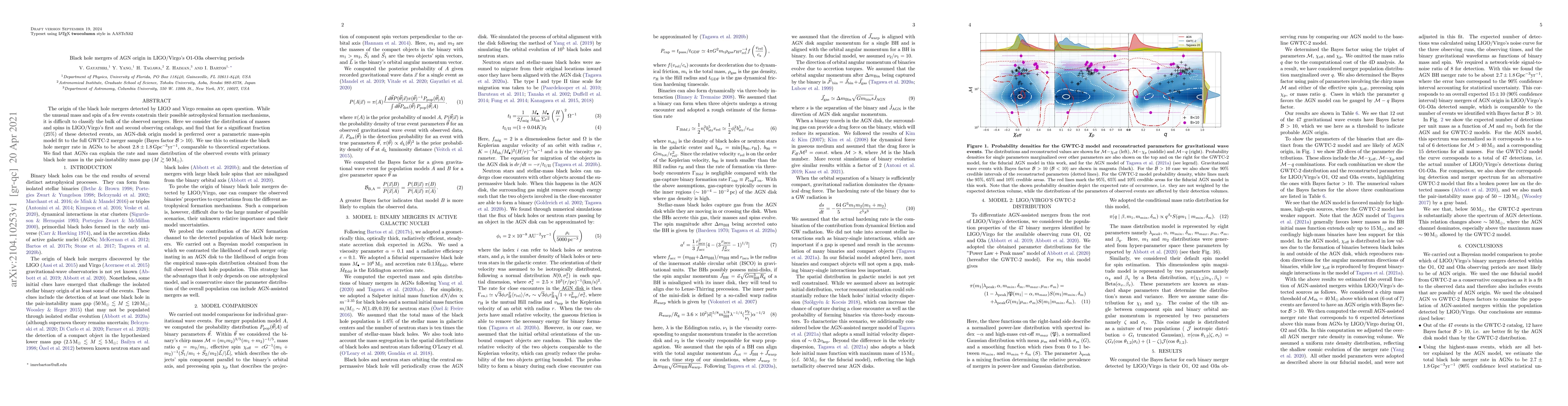 This paper investigates the origin of black hole mergers detected by LIGO and Virgo, finding that 25% of these events likely originate from AGN-disk systems. The estimated merger rate from AGNs is $2.8\pm 1.8$ Gpc$^{-3}$yr$^{-1}$, consistent with theoretical predictions.