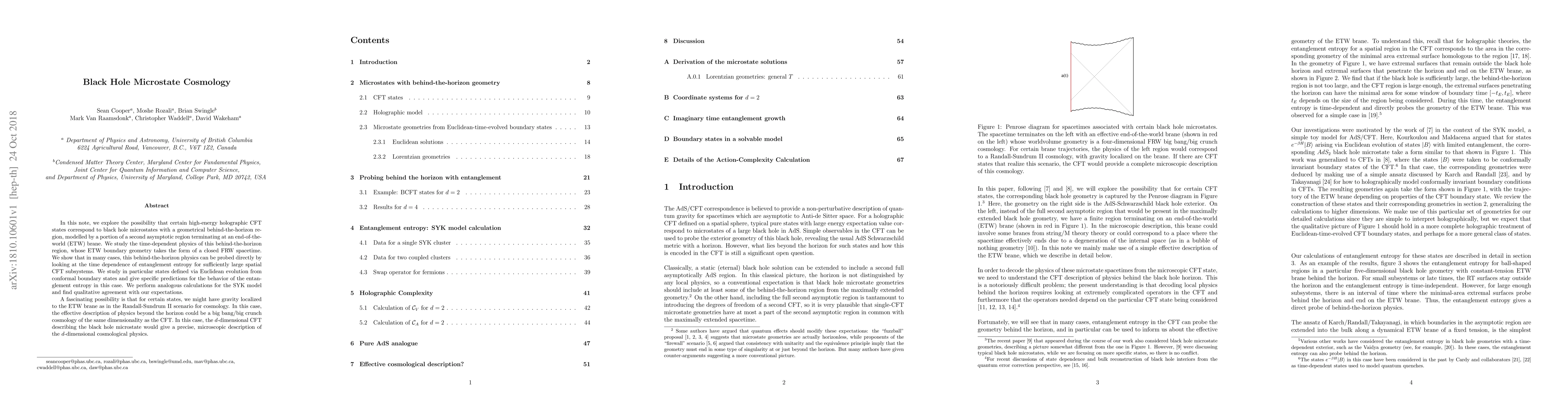 In this note, we explore the possibility that certain high-energy holographic CFT states correspond to black hole microstates with a geometrical behind-the-horizon region, modelled by a portion of a second asymptotic region terminating at an end-of-the-world (ETW) brane. We study the time-dependent physics of this behind-the-horizon region, whose ETW boundary geometry takes the form of a closed FRW spacetime. We show that in many cases, this behind-the-horizon physics can be probed directly by looking at the time dependence of entanglement entropy for sufficiently large spatial CFT subsystems. We study in particular states defined via Euclidean evolution from conformal boundary states and give specific predictions for the behavior of the entanglement entropy in this case. We perform analogous calculations for the SYK model and find qualitative agreement with our expectations. A fascinating possibility is that for certain states, we might have gravity localized to the ETW brane as in the Randall-Sundrum II scenario for cosmology. In this case, the effective description of physics beyond the horizon could be a big bang/big crunch cosmology of the same dimensionality as the CFT. In this case, the d-dimensional CFT describing the black hole microstate would give a precise, microscopic description of the d-dimensional cosmological physics.