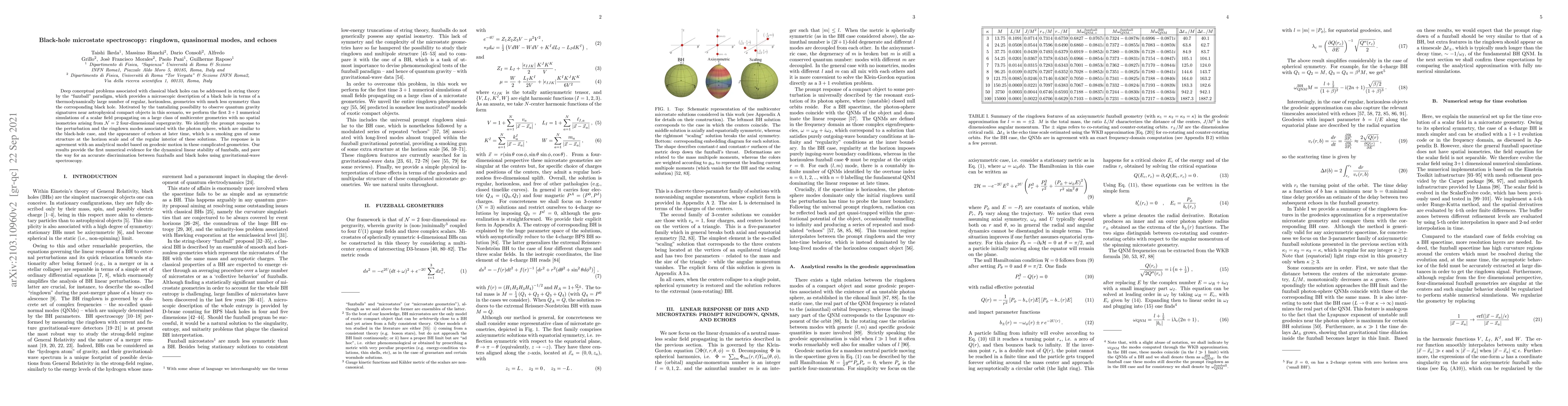 Deep conceptual problems associated with classical black holes can be addressed in string theory by the ``fuzzball'' paradigm, which provides a microscopic description of a black hole in terms of a thermodynamically large number of regular, horizonless, geometries with much less symmetry than the corresponding black hole. Motivated by the tantalizing possibility to observe quantum gravity signatures near astrophysical compact objects in this scenario, we perform the first $3+1$ numerical simulations of a scalar field propagating on a large class of multicenter geometries with no spatial isometries arising from ${\cal N}=2$ four-dimensional supergravity. We identify the prompt response to the perturbation and the ringdown modes associated with the photon sphere, which are similar to the black-hole case, and the appearance of echoes at later time, which is a smoking gun of some structure at the horizon scale and of the regular interior of these solutions. The response is in agreement with an analytical model based on geodesic motion in these complicated geometries. Our results provide the first numerical evidence for the dynamical linear stability of fuzzballs, and pave the way for an accurate discrimination between fuzzballs and black holes using gravitational-wave spectroscopy.