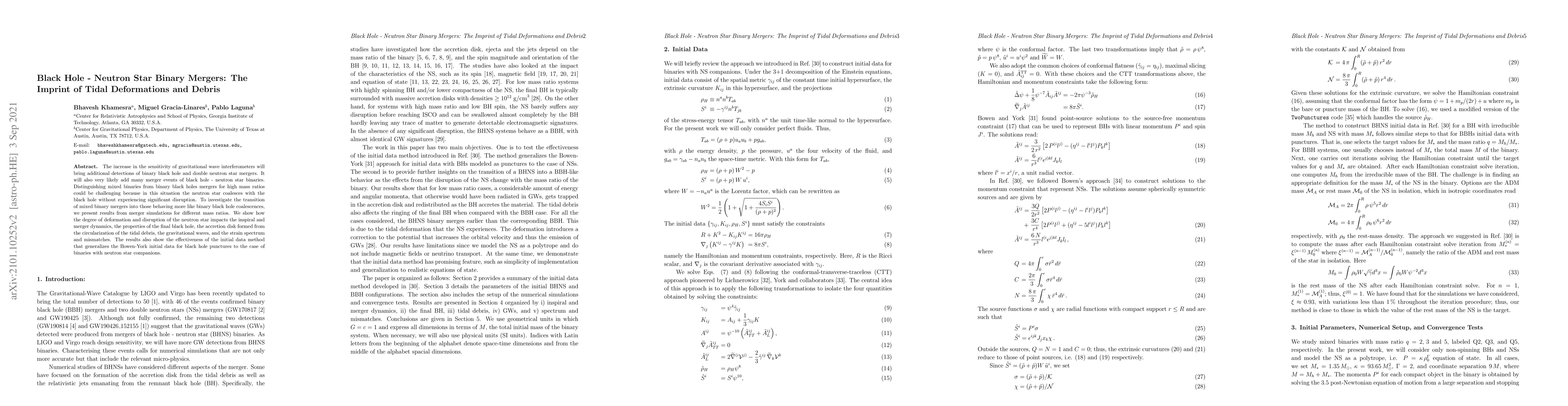 This paper investigates the dynamics of black hole-neutron star binary mergers, focusing on tidal deformations and debris. It explores how varying mass ratios affect the merger process, gravitational wave signals, and the formation of accretion disks, using advanced simulation techniques.