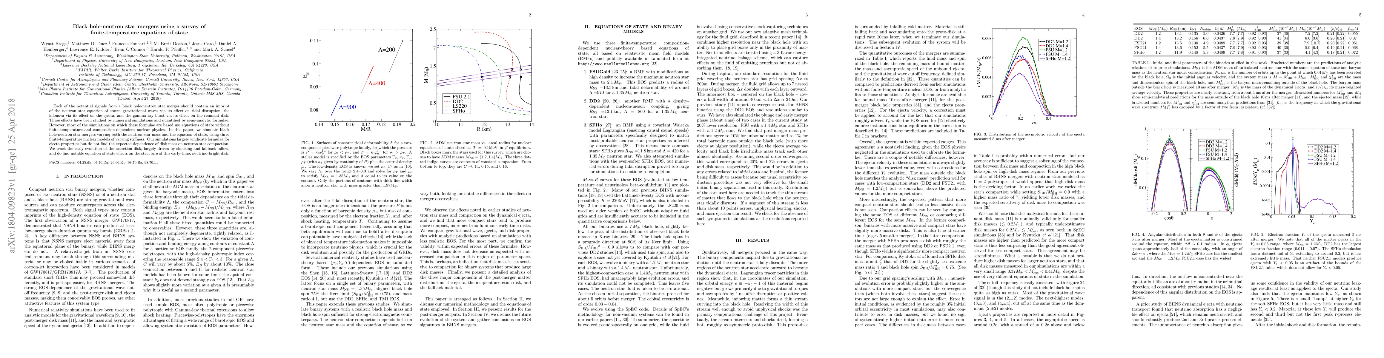 Each of the potential signals from a black hole-neutron star merger should contain an imprint of the neutron star equation of state: gravitational waves via its effect on tidal disruption, the kilonova via its effect on the ejecta, and the gamma ray burst via its effect on the remnant disk. These effects have been studied by numerical simulations and quantified by semi-analytic formulae. However, most of the simulations on which these formulae are based use equations of state without finite temperature and composition-dependent nuclear physics. In this paper, we simulate black hole-neutron star mergers varying both the neutron star mass and the equation of state, using three finite-temperature nuclear models of varying stiffness. Our simulations largely vindicate formulae for ejecta properties but do not find the expected dependence of disk mass on neutron star compaction. We track the early evolution of the accretion disk, largely driven by shocking and fallback inflow, and do find notable equation of state effects on the structure of this early-time, neutrino-bright disk.