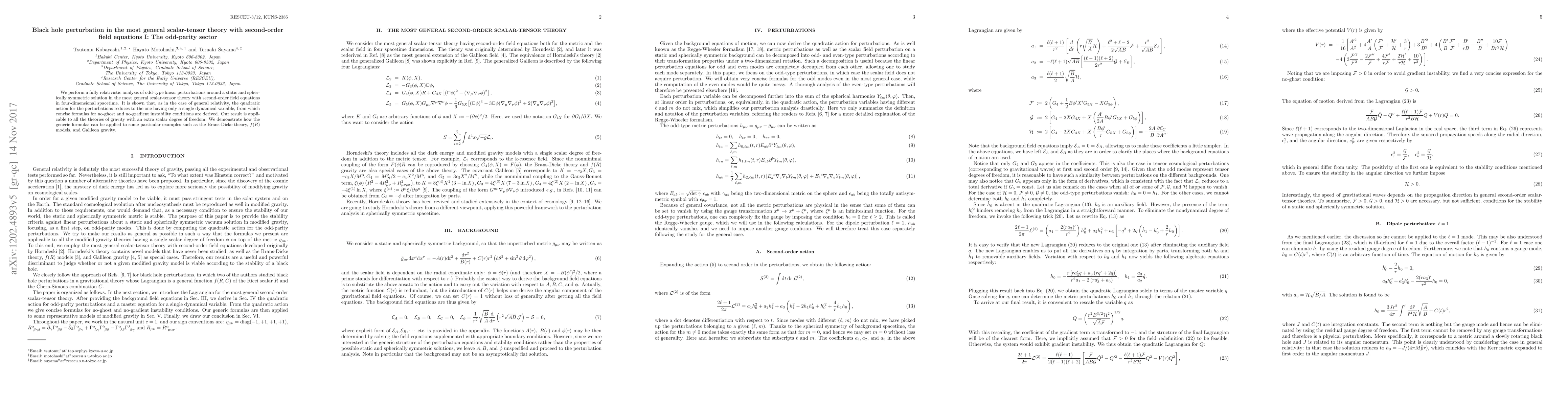 This paper investigates odd-parity perturbations in the most general scalar-tensor theory with second-order field equations, showing that the quadratic action simplifies to a single dynamical variable, akin to general relativity. It derives conditions for no-ghost and no-gradient instabilities and applies these results to specific theories like Brans-Dicke, $f(R)$ models, and Galileon gravity.