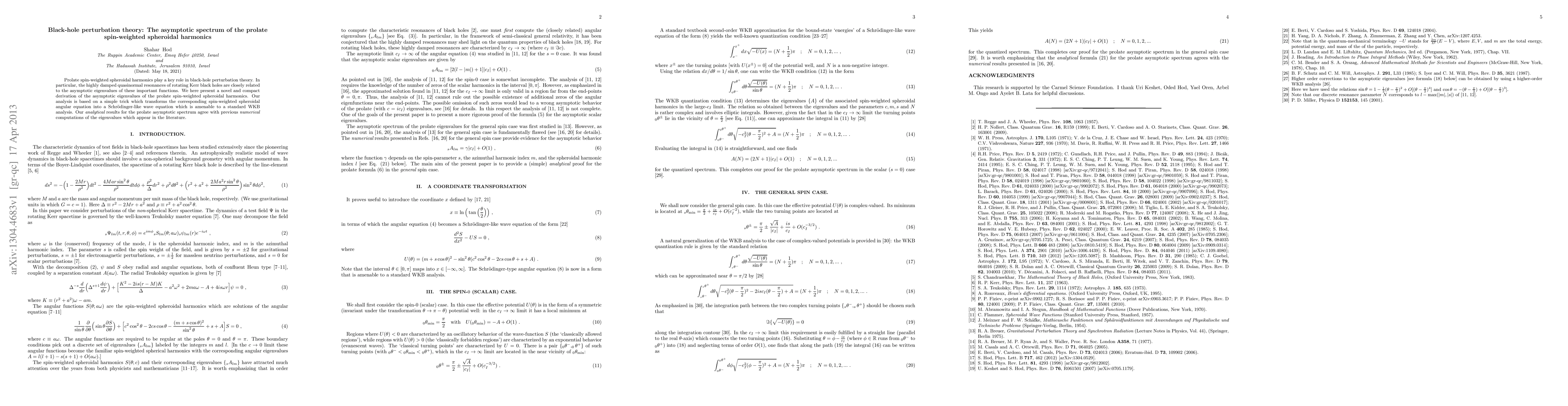 The paper provides a new derivation for the asymptotic eigenvalues of prolate spin-weighted spheroidal harmonics, crucial in black-hole perturbation theory, using a simplified transformation into a Schrödinger-like wave equation for WKB analysis, matching previous numerical results.