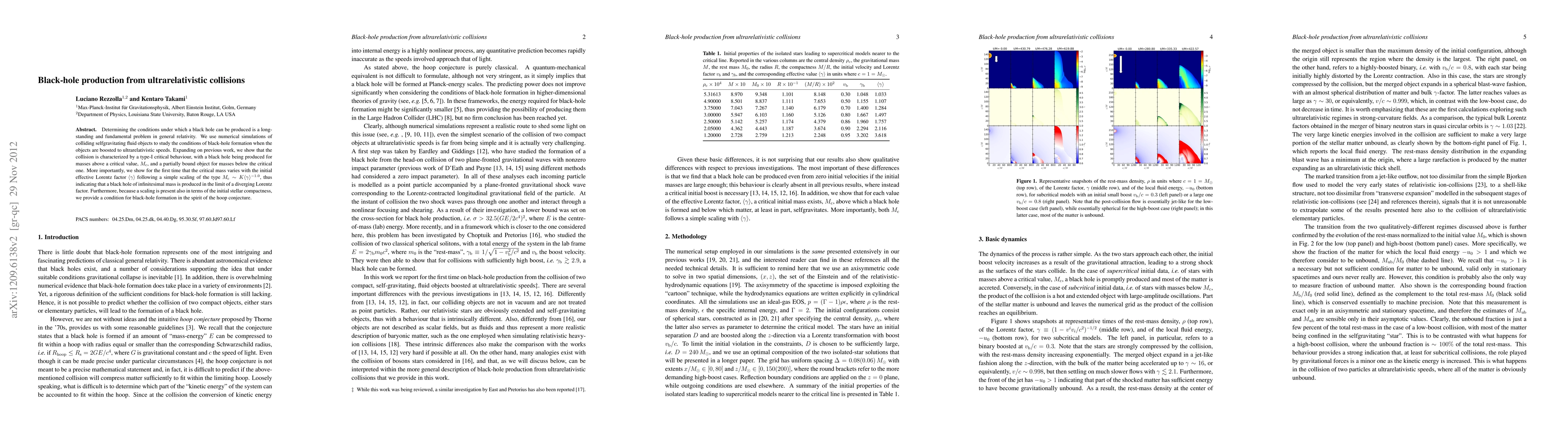 Determining the conditions under which a black hole can be produced is a long-standing and fundamental problem in general relativity. We use numerical simulations of colliding selfgravitating fluid objects to study the conditions of black-hole formation when the objects are boosted to ultrarelativistic speeds. Expanding on previous work, we show that the collision is characterized by a type-I critical behaviour, with a black hole being produced for masses above a critical value, M_c, and a partially bound object for masses below the critical one. More importantly, we show for the first time that the critical mass varies with the initial effective Lorentz factor <\gamma> following a simple scaling of the type M_c ~ K <\gamma>^{-1.0}, thus indicating that a black hole of infinitesimal mass is produced in the limit of a diverging Lorentz factor. Furthermore, because a scaling is present also in terms of the initial stellar compactness, we provide a condition for black-hole formation in the spirit of the hoop conjecture.