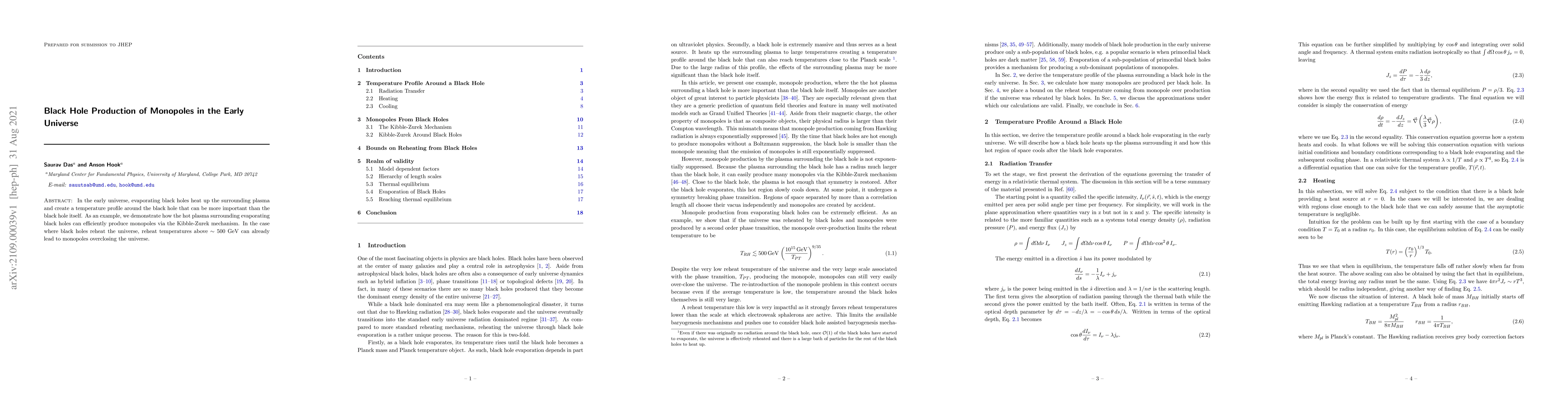 In the early universe, evaporating black holes heat up the surrounding plasma and create a temperature profile around the black hole that can be more important than the black hole itself. As an example, we demonstrate how the hot plasma surrounding evaporating black holes can efficiently produce monopoles via the Kibble-Zurek mechanism. In the case where black holes reheat the universe, reheat temperatures above $\sim 500$ GeV can already lead to monopoles overclosing the universe.