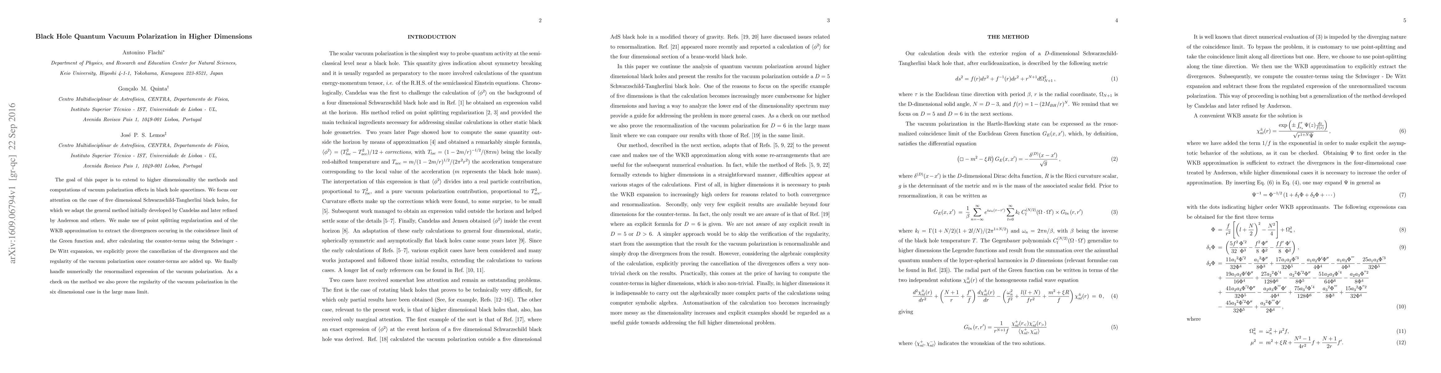 This paper extends the study of vacuum polarization effects in higher-dimensional black hole spacetimes, specifically focusing on five-dimensional Schwarzschild-Tangherlini black holes. It employs point splitting regularization and the WKB approximation to manage divergences, proving the regularity of vacuum polarization after adding counter-terms derived from the Schwinger-De Witt expansion.