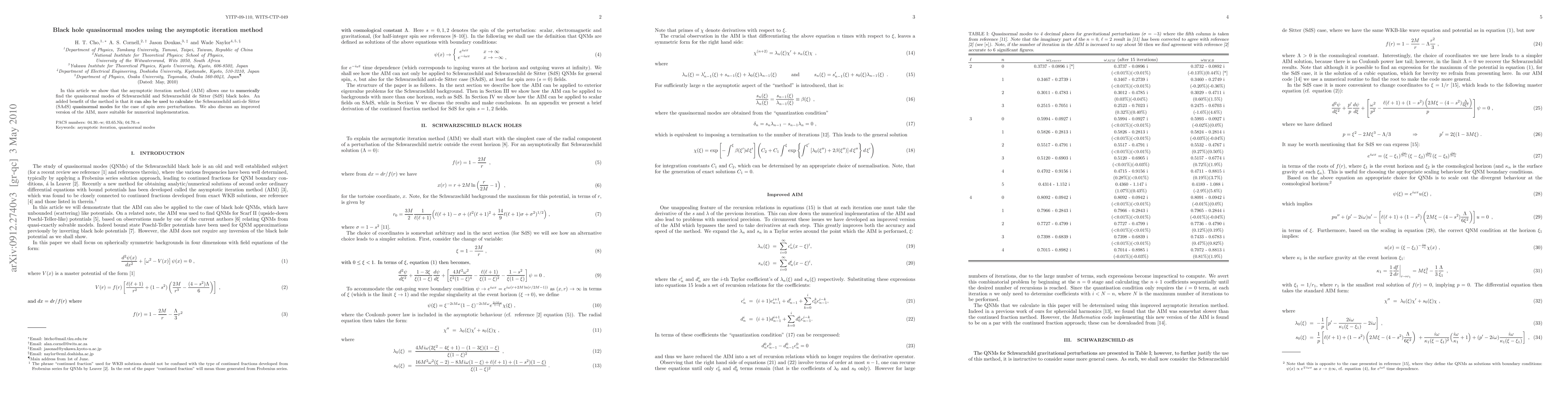 In this article we show that the asymptotic iteration method (AIM) allows one to numerically find the quasinormal modes of Schwarzschild and Schwarzschild de Sitter (SdS) black holes. An added benefit of the method is that it can also be used to calculate the Schwarzschild anti-de Sitter (SAdS) quasinormal modes for the case of spin zero perturbations. We also discuss an improved version of the AIM, more suitable for numerical implementation.