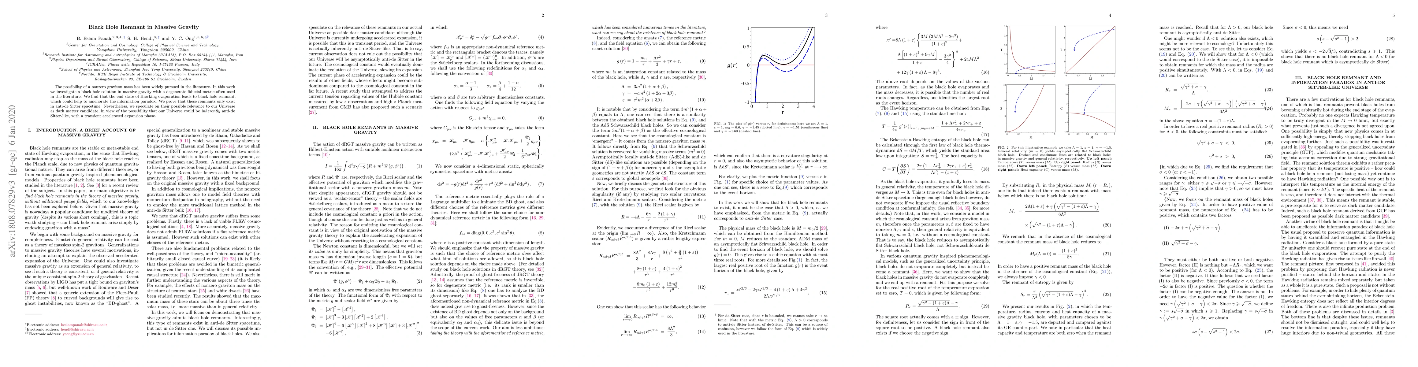 Researchers find that black holes in massive gravity can leave behind remnants, potentially resolving the information paradox, but these remnants only exist in anti-de Sitter spacetime.