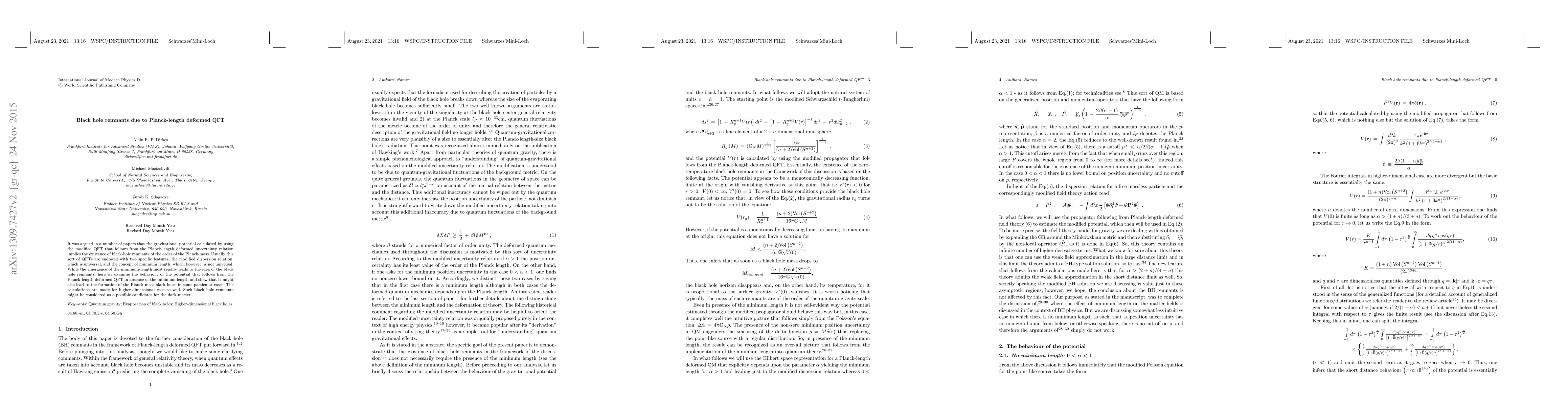 It was argued in a number of papers that the gravitational potential calculated by using the modified QFT that follows from the Planck-length deformed uncertainty relation implies the existence of black-hole remnants of the order of the Planck-mass. Usually this sort of QFTs are endowed with two specific features, the modified dispersion relation, which is universal, and the concept of minimum length, which, however, is not universal. While the emergence of the minimum-length most readily leads to the idea of the black hole remnants, here we examine the behaviour of the potential that follows from the Planck-length deformed QFT in absence of the minimum length and show that it might also lead to the formation of the Planck mass black holes in some particular cases. The calculations are made for higher-dimensional case as well. Such black hole remnants might be considered as a possible candidates for the dark-matter.