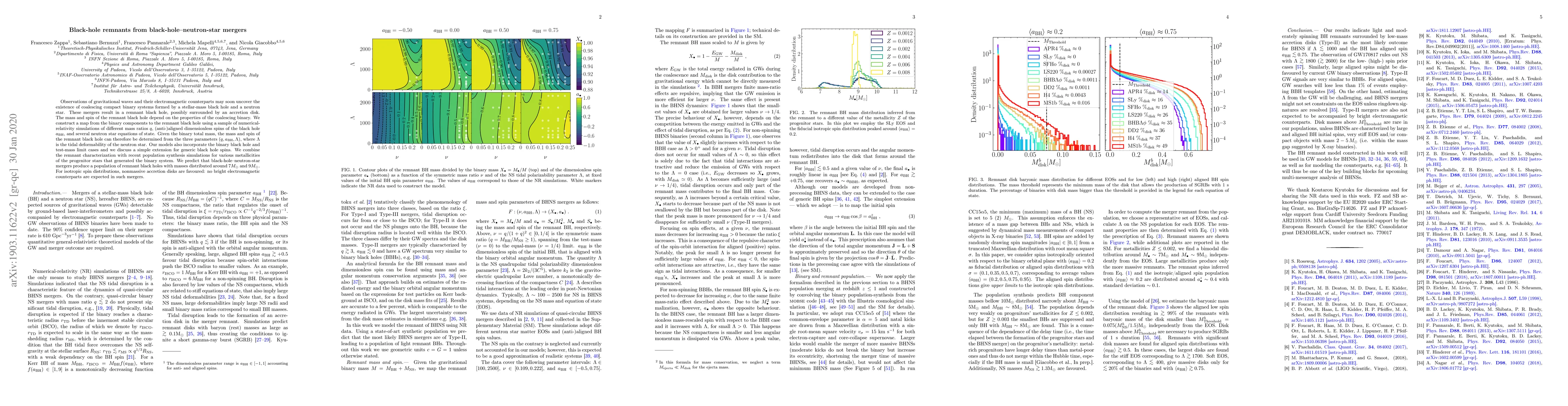 The paper presents a model that relates the properties of coalescing black-hole--neutron-star binaries to the characteristics of their remnant black holes, using a set of three parameters (q, a_BH, Λ) derived from numerical-relativity simulations.