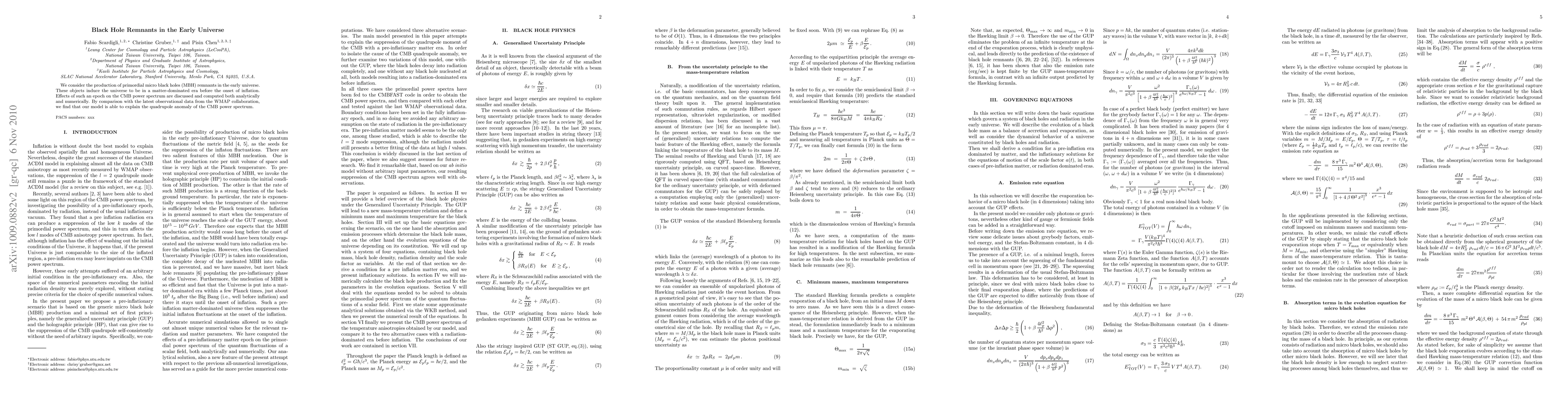 We consider the production of primordial micro black holes (MBH) remnants in the early universe. These objects induce the universe to be in a matter-dominated era before the onset of inflation. Effects of such an epoch on the CMB power spectrum are discussed and computed both analytically and numerically. By comparison with the latest observational data from the WMAP collaboration, we find that our model is able to explain the quadrupole anomaly of the CMB power spectrum.