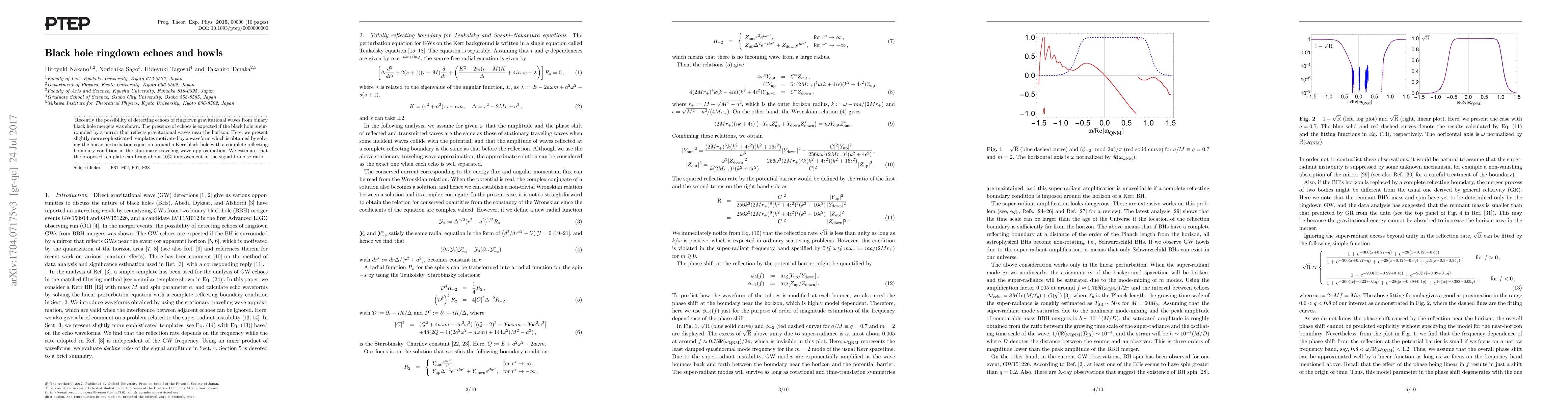 We proposed a possible improvement of the GW template for BHechoes, motivated by the solution of the perturbation equation with a completely reflecting boundary placed near the horizon.