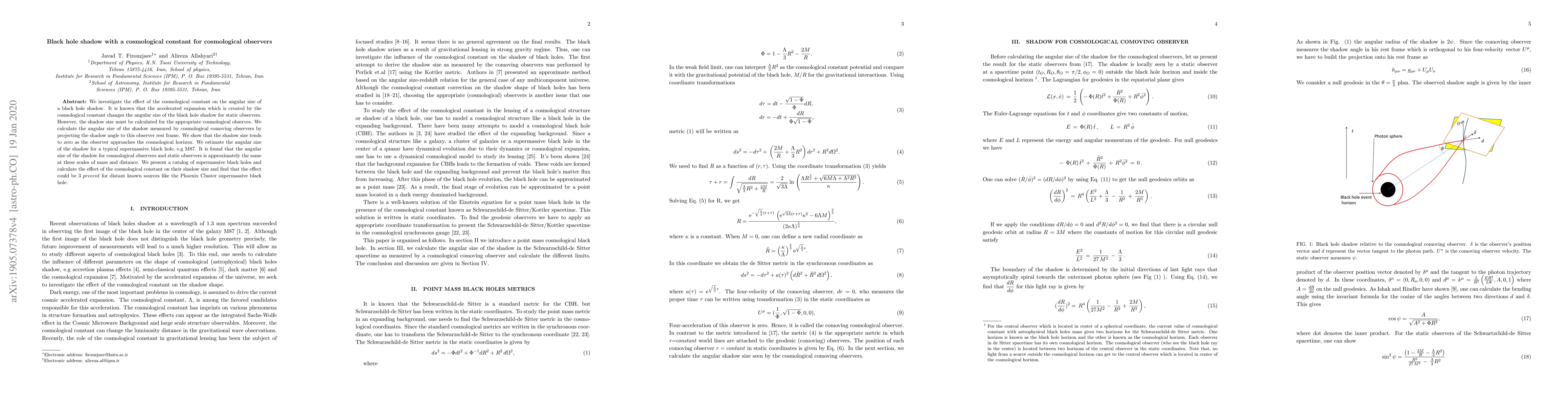 This paper investigates how the cosmological constant affects the angular size of a black hole's shadow, particularly for cosmological comoving observers. It finds that the shadow size diminishes as observers approach the cosmological horizon, with the effect being approximately 3% for distant supermassive black holes like the Phoenix Cluster's.