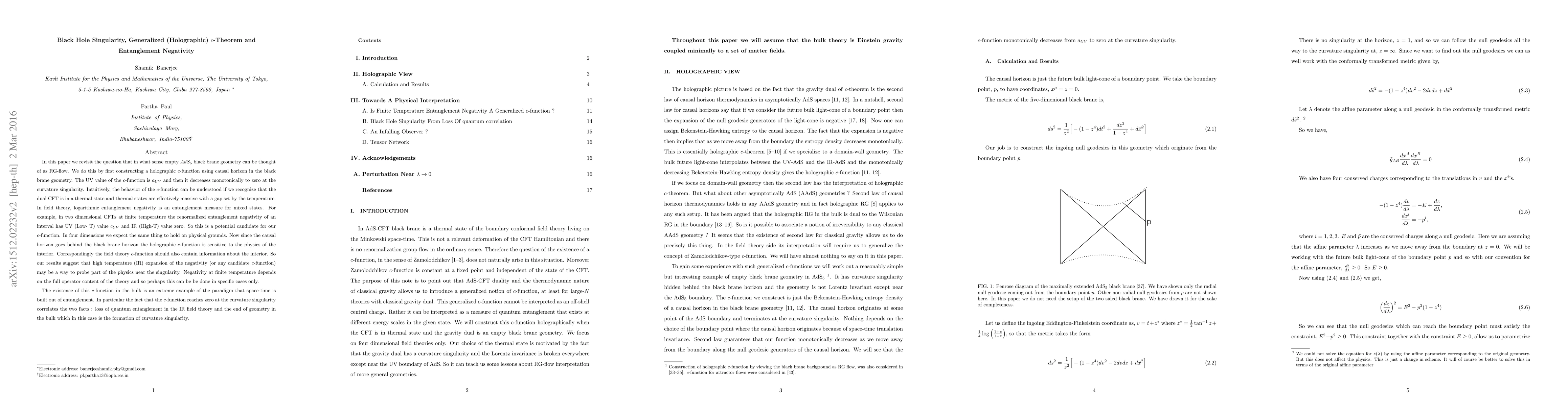 This paper explores the connection between black hole singularities and the holographic $c$-theorem, proposing a holographic $c$-function that decreases to zero at the curvature singularity. It suggests that high temperature expansions of entanglement negativity may reveal physics near the singularity, linking the loss of quantum entanglement in the IR field theory to the formation of a curvature singularity in the bulk.