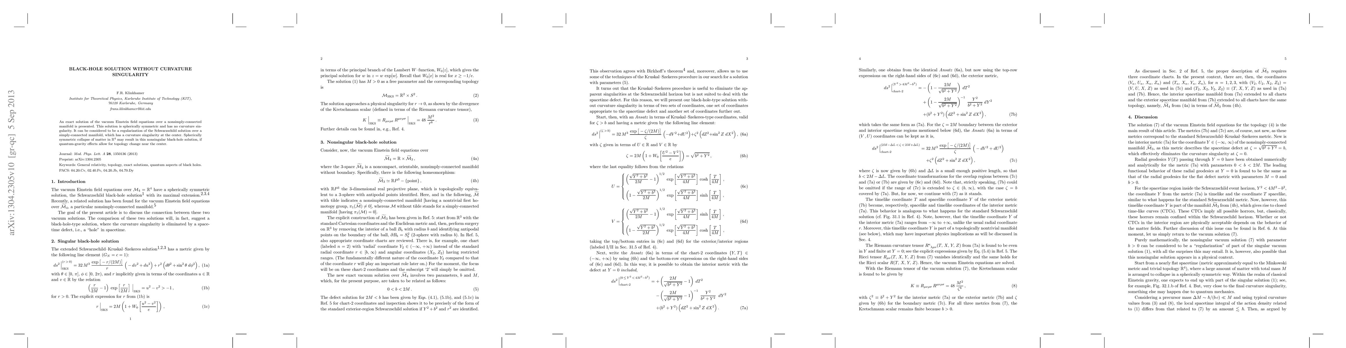 This paper presents an exact spherically symmetric solution to the vacuum Einstein field equations without a curvature singularity, offering a regularization of the Schwarzschild solution and suggesting that quantum-gravity effects could allow for nonsingular black-hole formation through topology change.