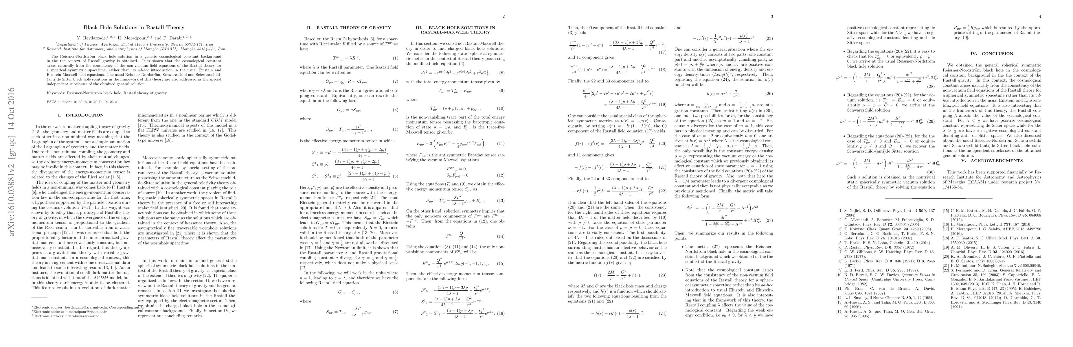 The main technical contribution is the derivation of the Reissner-Nordstr¨om blackhole solution in a cosmological constant background within the framework of the Rastall theory.