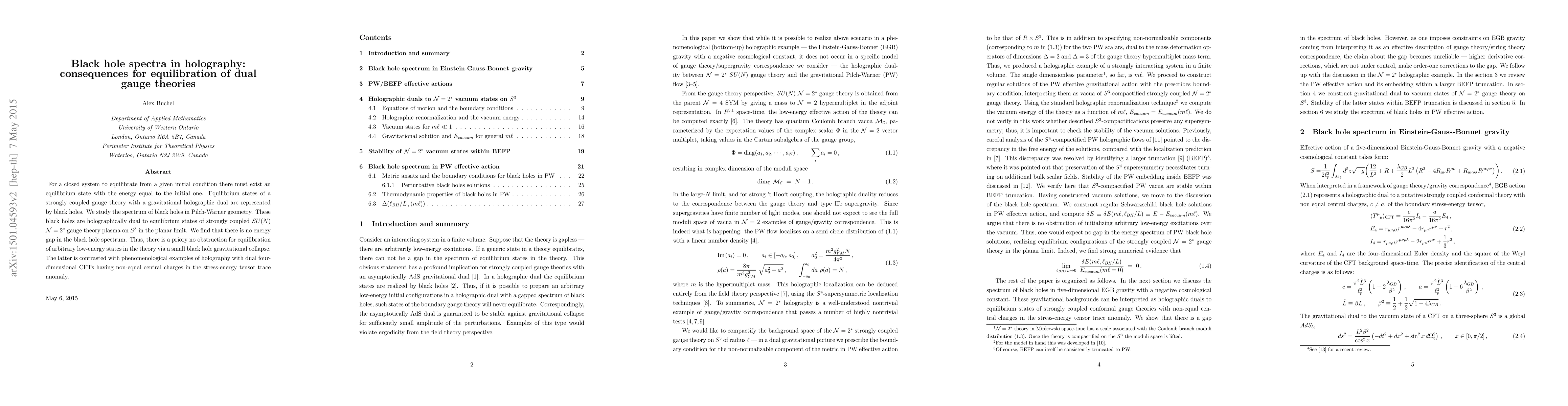 For a closed system to equilibrate from a given initial condition there must exist an equilibrium state with the energy equal to the initial one. Equilibrium states of a strongly coupled gauge theory with a gravitational holographic dual are represented by black holes. We study the spectrum of black holes in Pilch-Warner geometry. These black holes are holographically dual to equilibrium states of strongly coupled $SU(N)$ ${\cal N}=2^*$ gauge theory plasma on $S^3$ in the planar limit. We find that there is no energy gap in the black hole spectrum. Thus, there is a priory no obstruction for equilibration of arbitrary low-energy states in the theory via a small black hole gravitational collapse. The latter is contrasted with phenomenological examples of holography with dual four-dimensional CFTs having non-equal central charges in the stress-energy tensor trace anomaly.