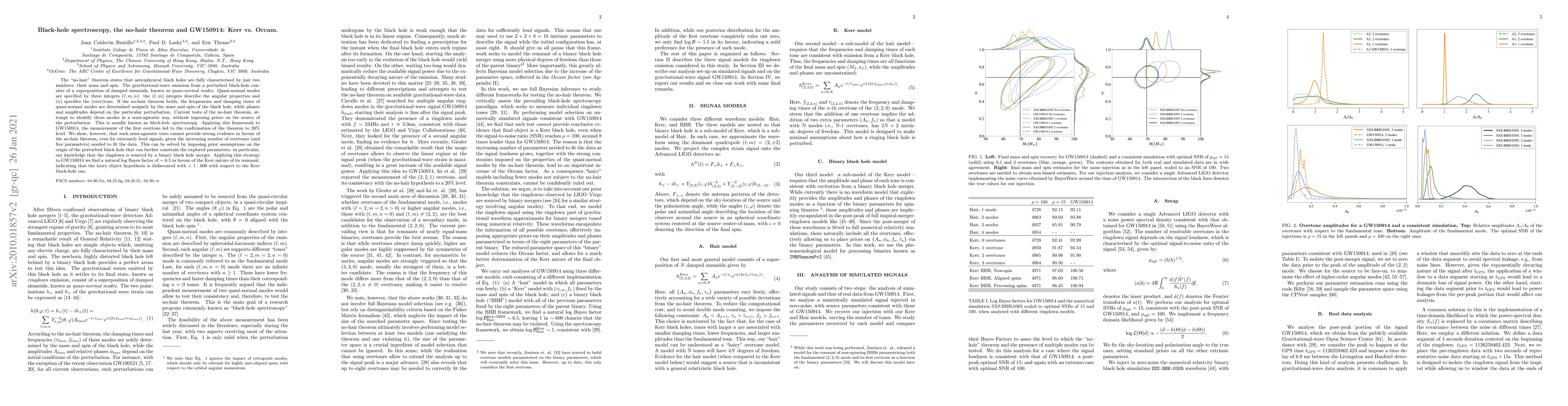 The "no-hair" theorem states that astrophysical black holes are fully characterised by just two numbers: their mass and spin. The gravitational-wave emission from a perturbed black-hole consists of a superposition of damped sinusoids, known as \textit{quasi-normal modes}. Quasi-normal modes are specified by three integers $(\ell,m,n)$: the $(\ell, m)$ integers describe the angular properties and $(n)$ specifies the (over)tone. If the no-hair theorem holds, the frequencies and damping times of quasi-normal modes are determined uniquely by the mass and spin of the black hole, while phases and amplitudes depend on the particular perturbation. Current tests of the no-hair theorem, attempt to identify these modes in a semi-agnostic way, without imposing priors on the source of the perturbation. This is usually known as \textit{black-hole spectroscopy}. Applying this framework to GW150914, the measurement of the first overtone led to the confirmation of the theorem to $20\%$ level. We show, however, that such semi-agnostic tests cannot provide strong evidence in favour of the no-hair theorem, even for extremely loud signals, given the increasing number of overtones (and free parameters) needed to fit the data. This can be solved by imposing prior assumptions on the origin of the perturbed black hole that can further constrain the explored parameters: in particular, our knowledge that the ringdown is sourced by a binary black hole merger. Applying this strategy to GW150914 we find a natural log Bayes factor of $\sim 6.5$ in favour of the Kerr nature of its remnant, indicating that the hairy object hypothesis is disfavoured with $<1:600$ with respect to the Kerr black-hole one.
