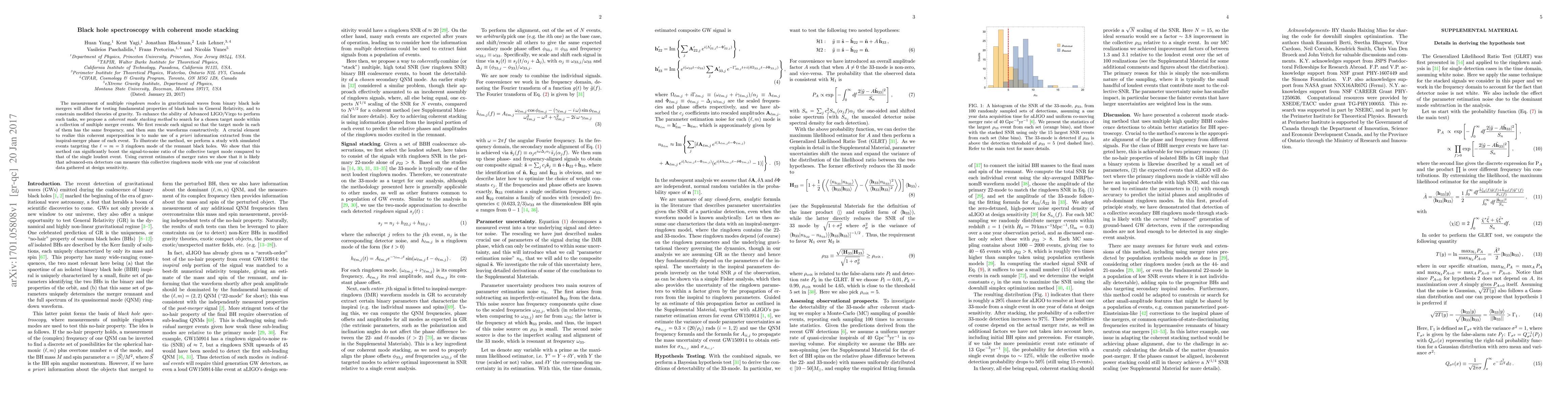 The measurement of multiple ringdown modes in gravitational waves from binary black hole mergers will allow for testing fundamental properties of black holes in General Relativity, and to constrain modified theories of gravity. To enhance the ability of Advanced LIGO/Virgo to perform such tasks, we propose a coherent mode stacking method to search for a chosen target mode within a collection of multiple merger events. We first rescale each signal so that the target mode in each of them has the same frequency, and then sum the waveforms constructively. A crucial element to realize this coherent superposition is to make use of a priori information extracted from the inspiral-merger phase of each event. To illustrate the method, we perform a study with simulated events targeting the l=m=3 ringdown mode of the remnant black holes. We show that this method can significantly boost the signal-to-noise ratio of the collective target mode compared to that of the single loudest event. Using current estimates of merger rates we show that it is likely that advanced-era detectors can measure this collective ringdown mode with one year of coincident data gathered at design sensitivity.