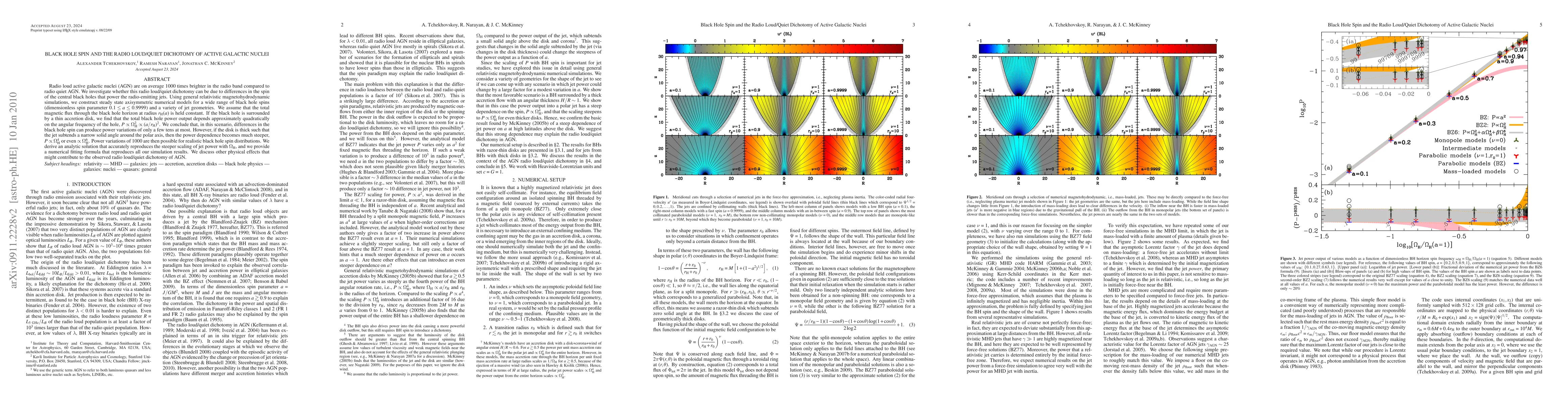 This paper investigates the relationship between the spin of central black holes and the radio loud/quiet dichotomy in active galactic nuclei (AGN). It finds that while thin accretion disks result in modest power variations, thick disks can produce significant power differences, potentially explaining the radio loud/quiet dichotomy.